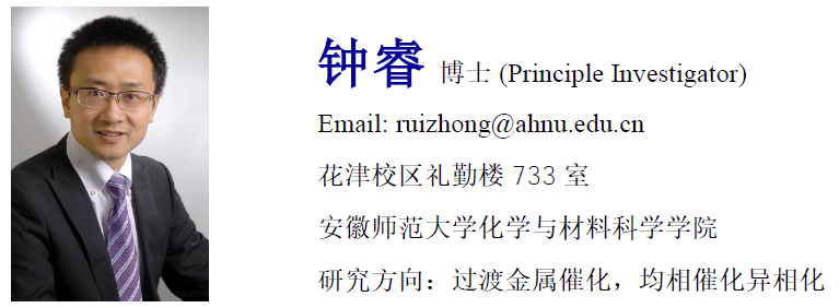 钟睿教授课题组的研究聚焦于表面金属有机化学,致力于构建均相催化与异相催化之间的桥梁,研究方向涵盖单原子/纳米催化材料、氮杂环卡宾催化剂及固载型均相催化剂。课题组以推动传统均相催化反应的高效异相化为目标,着力开发低成本、高性能的催化材料,并针对均相催化中存在的关键挑战设计新型催化体系。通过结合有机合成与无机材料表征方法,深入研究催化反应机理,深化对催化过程的理解,为发展新型过渡金属催化剂提供理论指导与实践基础。