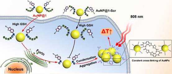 图1. Furin介导金纳米聚集及其光热治疗示意图