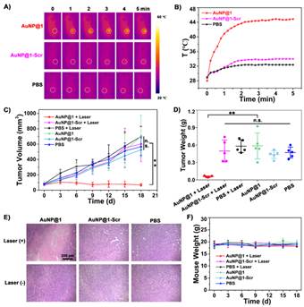 图2. Furin介导的金纳米原位自组装评估肿瘤光热治疗效果