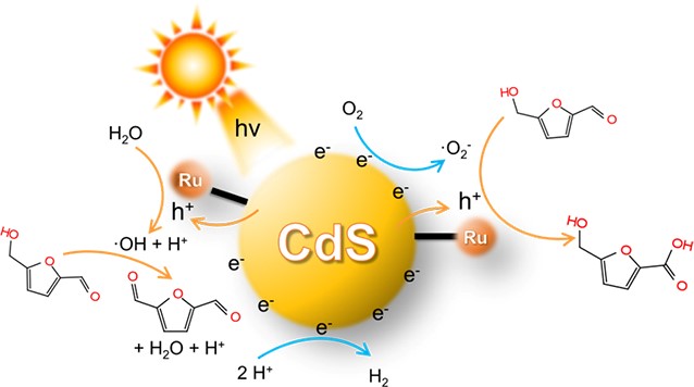 绿帽奴熊宇杰教授研究团队通过在 CdS 量子点上锚定 Ru 配合物,开发了一种高效的光催化剂。基于在不同的气氛下可控生成的两个氧自由基,实现了 HMF 向 DFF 或 HMFCA 的选择性氧化,并且具有高转化率(>81%)和选择性(>90%)。这种选择性光催化转换也可以在实验室外通过自然阳光正常驱动。该工作首次实现了通过太阳光驱动HMF选择氧化生产HMFCA。更重要的是,该光催化剂已被证明适用于其他具有羟基和醛基化合物的选择氧化。