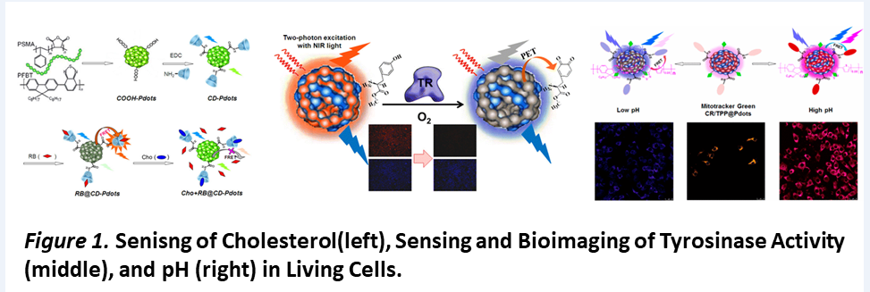 藉光化学与光物理机制,设计构筑了系列基于半导体聚合物量子点的传感界面,实现了不同的生化物质,如胆固醇()、酪氨酸酶()以及H+)的传感与细胞成像分析。
