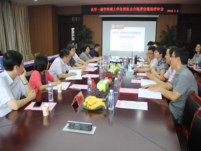 化学一级学科博士学位授权点合格评估现场评审会在理科实训大楼702会议室举行。国务院学位委员会化学学科评议组成员、南京大学郭子建院士担任评估专家组组长、中科院上海有机化学研究所赵刚研究员,南京大学徐静娟教授、王新平教授,中国科学技术大学俞书宏教授、崔华教授、陈昶乐教授担任专家组成员。学校副校长彭凤莲、研究生院副院长王昊、绿帽奴