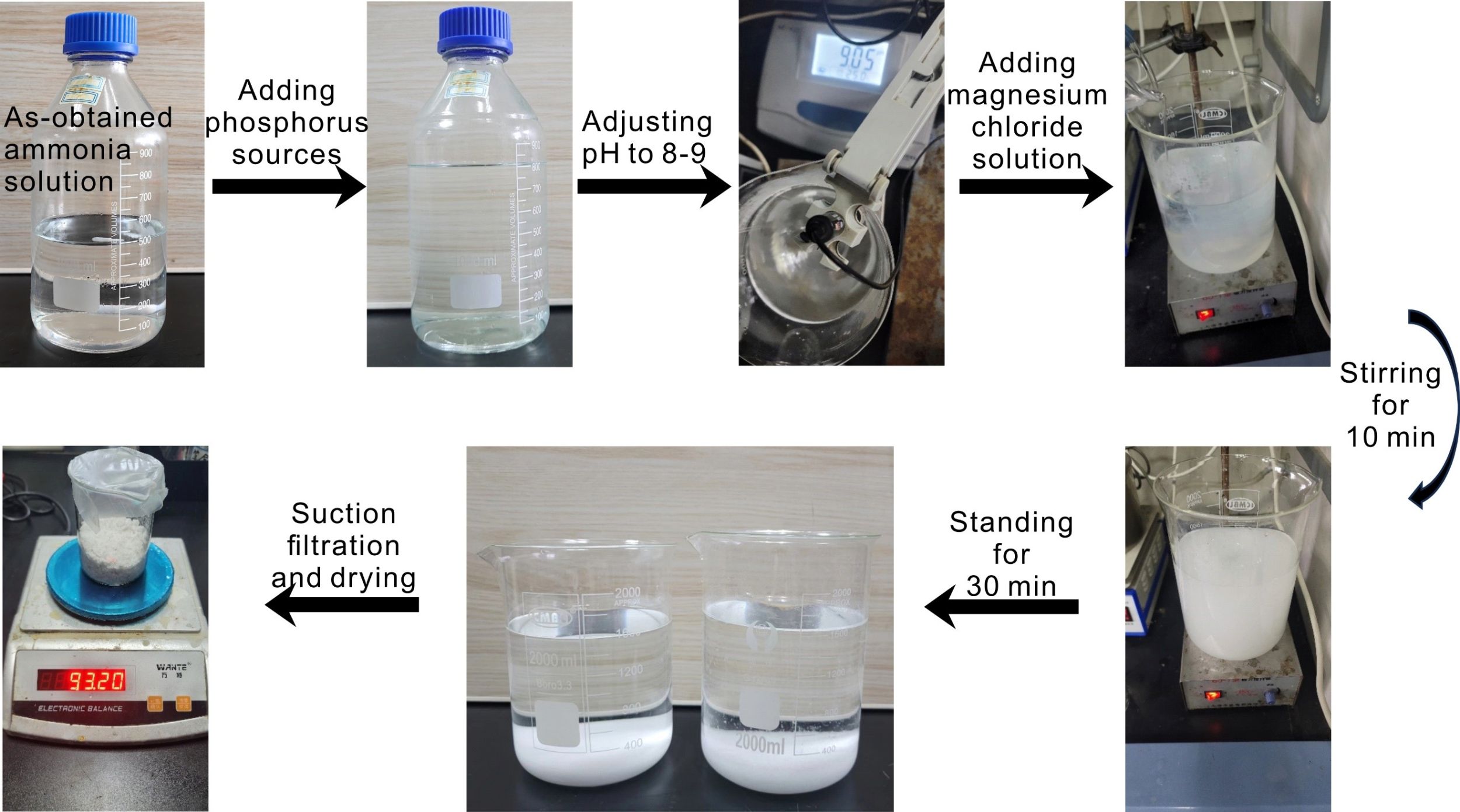 图2.用SnAg电催化剂从电解液中合成鸟粪石产品的工艺示意图。