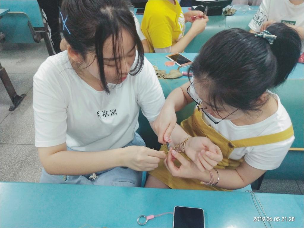 活动接近尾声,同学们开启了DIY模式,精致的香囊与手链展现了同学们的动手能力,在他们的细心劳作下,活动迎来了尾声。