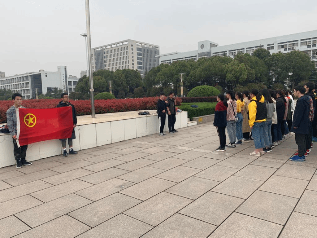 活动分为“齐唱红歌,代表演讲,团员宣誓”三个部分。活动一开始,应用化学一班全体同学唱响《我和我的祖国》,热情洋溢的歌声回荡在国旗下,正如歌词所写的那样,“我和我的祖国,一刻也不能分割”,反映出了应用化学一班同学们良好的精神风貌和与祖国共发展共进退的决心。