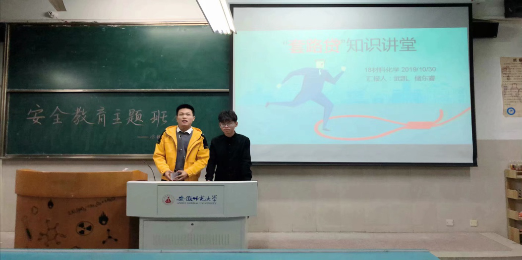 本网讯(2018级材料化学 陈凯凯)为增强大学生对“套路贷”的了解,提高防范意识,2019年10月31日晚上,2018级材料化学专业全体同学在安全委员储东睿和武凯同学的带领下,在2030103开展了“套路贷”知识讲堂。