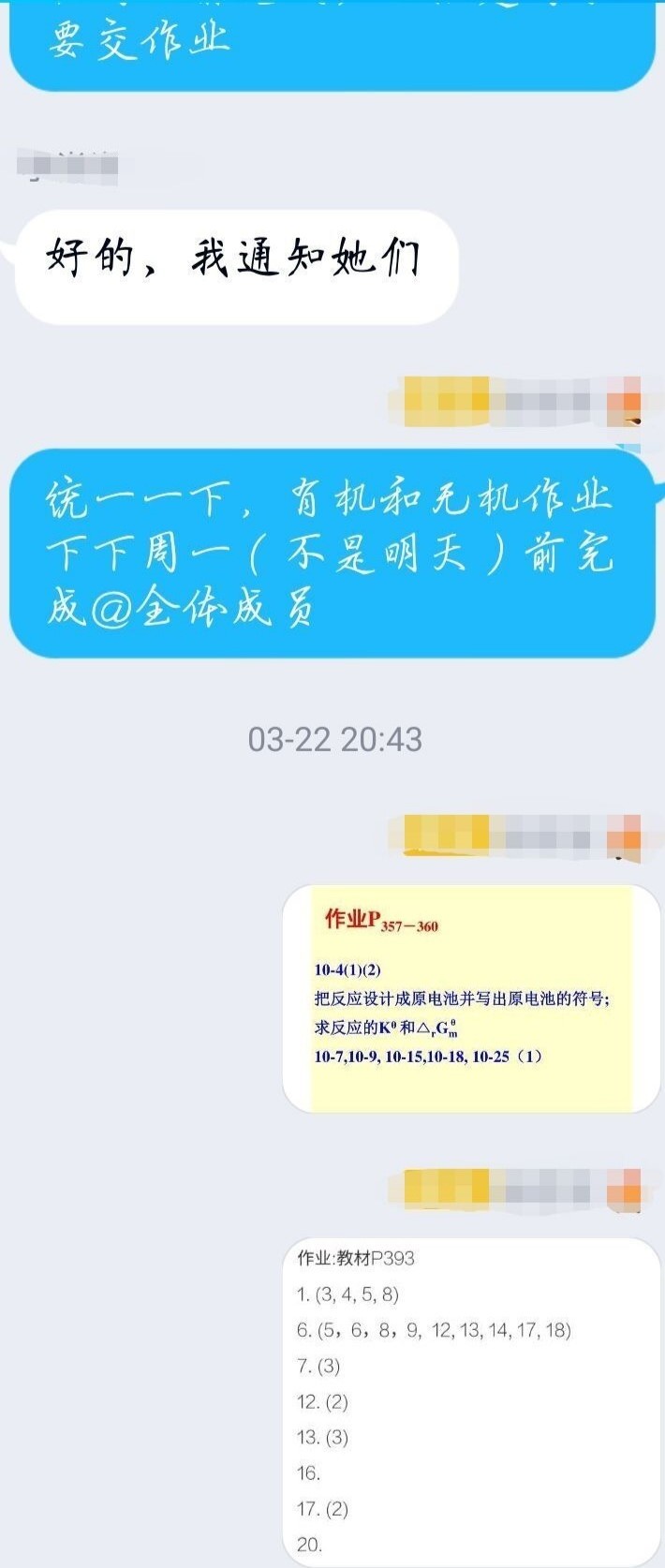 为了疫情期间知识传授效率得到保障,两个班级在辅导员周冬冬老师及陈宁、胡思宣两位学委的监督下,进行每两周定期上交一次无机、有机、分析化学的专业课笔记,希望同学们能在云课堂上依旧保持一种对专业课及其他课程知识掌握的自觉性,同时将电子教材和授课老师所发课件利用到最大化。