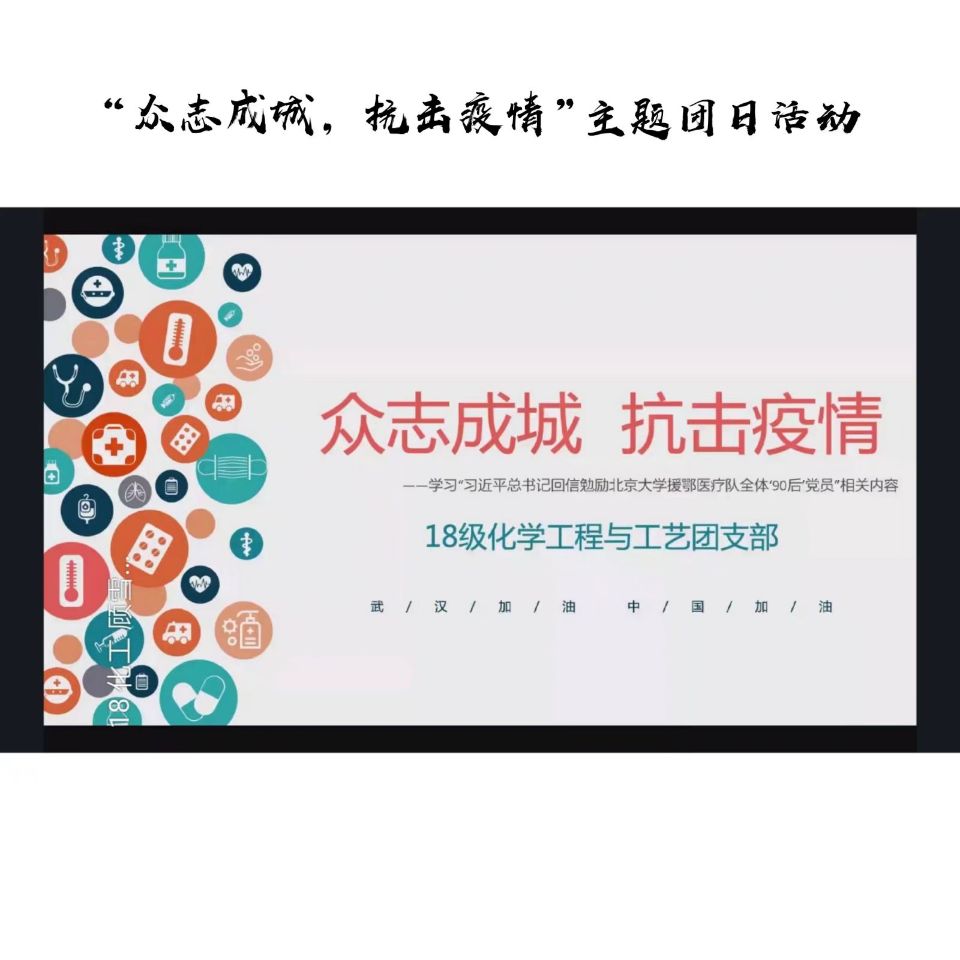 本网讯(2018级化学工程与工艺 尹彤昕)谁也没有想到,伴随庚子鼠年而来的是一场前所未有的灾难。新年钟声敲响的那一刻,武汉告急,湖北告急,全国告急。生活停摆,人心震荡,舆论汹涌。疫情期间,2018级化学工程与工艺专业开展了一系列线上活动,打造了“化工云时间”。