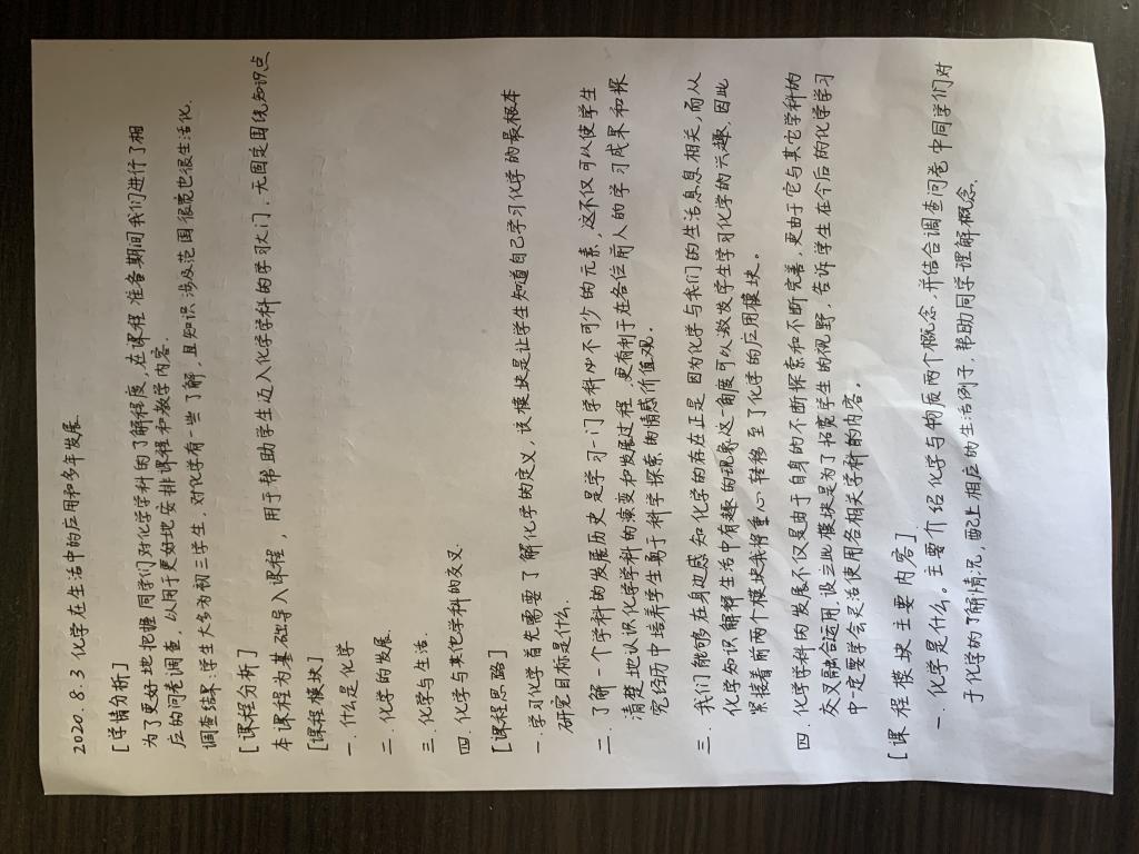 8月2日在线上举行的师生见面会,是团队成员和学生们的第一次见面。心怀期待与些许紧张,团队成员详细介绍了之后十几天的课程安排及相关趣味活动,拉开了本次科普课堂的第一幕。“迨天之未阴雨,彻彼桑土,绸缪牖户”,团队成员积极准备着每一节课的宣讲课件,有些成员还准备了手写笔记,希望为学生们课后复习提供便利。前三节课,“化”梦之源团队的小老师们主要介绍了化学知识在生活中的应用,生活处处离不开化学,学生们感叹于化学学科的神奇,同时也对化学学科产生了浓厚的兴趣。