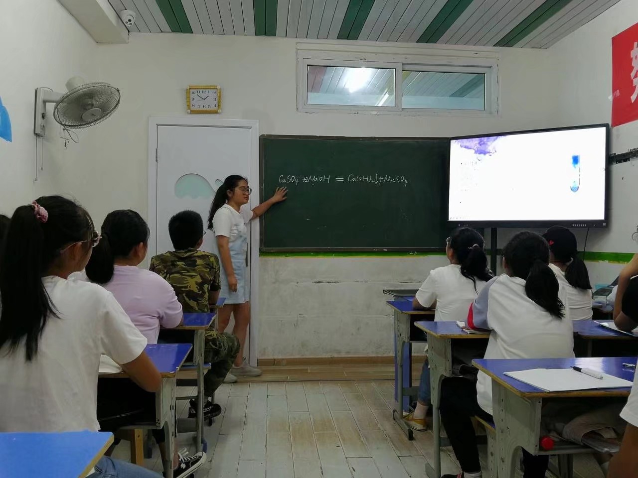 为及时检验学生们的教学成果,并第一时间完善团队成员教学过程中的不足之处。团队成员群策群力,制作了调查问卷及时掌握学生的学习情况;举办了阶段性小测验和课堂笔记大赛,旨在通过化学知识竞答和课堂笔记整理,巩固学生们之前所学的化学知识;推荐化学元素版2048、烧杯小游戏,让学生们足不出户,在指尖上领略化学反应的魅力。此外,团队成员汪雨薇还走进线下课堂,和学生们积极互动,为学生答疑解惑,面对面了解学生在学习化学过程中的面临的困难。