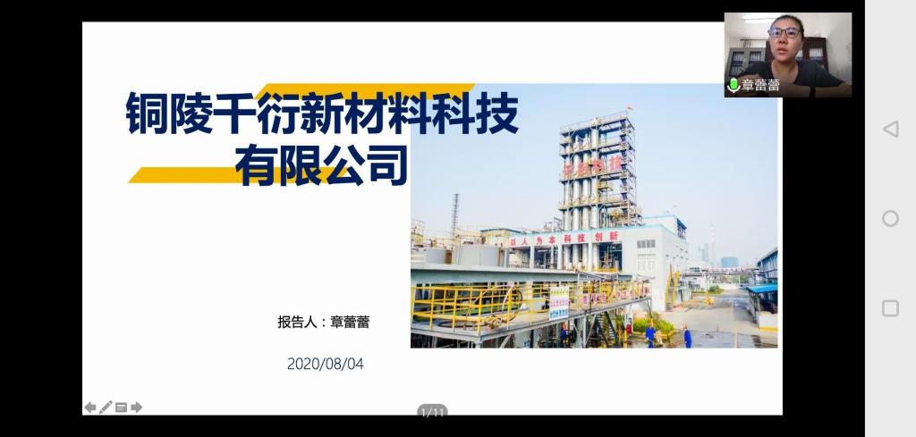 暑期社会实践“疫情背景下大学生就业形势”主题调研团队于2O2O年8月4日下午三点和铜陵千衍新材料科技有限公司借助腾讯会议平台进行了线上会议访谈。