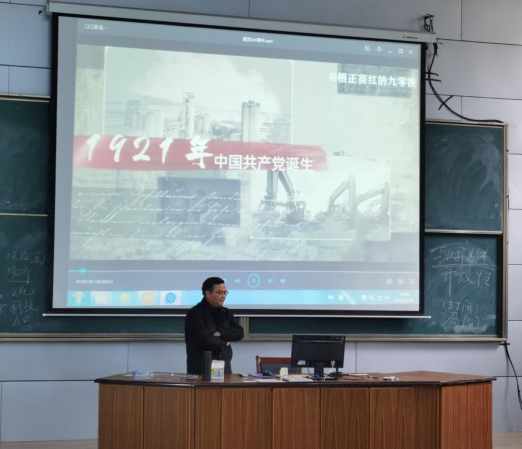 2021年,是中国共产党建党100周年,是“十四五”开局之年,是开启全面建设社会主义现代化国家新征程的一年,是在历史长河中注定不平凡的一年。100年来,中国社会发生了沧桑巨变,从站起来到富起来再到强起来,中国共产党与时代同步伐,与人民共命运。为了加强对同学们的爱国主义教育,唤起对祖国的热爱,在班会开始,程紫丹老师播放了一段回顾中国共产党建党百年历史的视频。从1919年顾维钧先生巴黎和会拒绝签字,就山东问题据理力争,再到中国共产党成立,从1931年抗日战争爆发,再到1945年日本宣布无条件投降,从1949年新中国成立,到第一颗原子弹爆炸,再到改革开放这一基本国策的成功实施,从第一艘载人飞船发射成功,再到如今疫情得以全面控制,中国饱经风霜,但仍历久弥新,生机勃勃。视频播放完毕,许多同学热泪盈眶,民族自豪感油然而生。