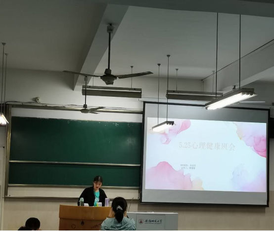 心理委员黄姗姗向同学们介绍了“5・25”的来源。“5・25”的谐音即为“我爱我”,提醒同学们“珍惜生命,关爱自己”。接着,黄姗姗向同学们介绍了几种大学生常见的危机,并通过视频教学让大家学习了面临危机时的干预措施。接着播放视频介绍案例,为大家分享了社会并不可怕,大家要勇于跳出“舒适圈”,挑战自我,突破自我等观念。其次,由理性的含义、理性的史实、什么叫不理性这三个概念,引出问题“为什么要做一个理性的人?”这个问题引发了同学们的思考,大家互相交流,发表自己的感悟。
