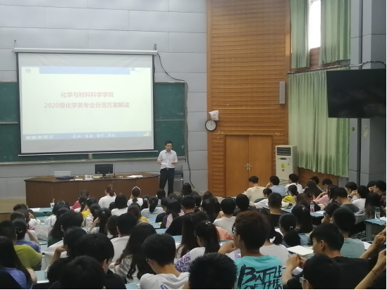 于7月2日下午在2010105教室召开2020级化学类专业分流工作实施方案解读指导会,功能分子固体教育部重点实验室主任商永嘉,院党委副书记李古州,副院长方臻,化学系系主任阙荣辉,辅导员曹右林以及全体2020级化学类专业学生参加会议,本次会议由李古州主持。