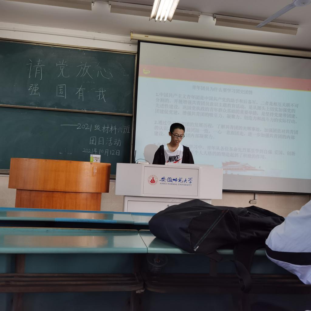在此项活动中,张越带领我们重温了中国共青团的团史,加强团员对共青团的认识,带领团员团结一致、一心一意跟团走,进一步加强共青团的内部建设,提高共青团内部凝聚力。其次,张越带领新生团员重温入团誓词,加强了同学们的团员意识;详细学习了“三会两制一课”,使新生们意识到共青团作为党的助手和后备军,应当严格锻炼自己,争取入党机会,通过此项活动,新生们也明确了团员发展细则以及团费收缴使用管理规定。