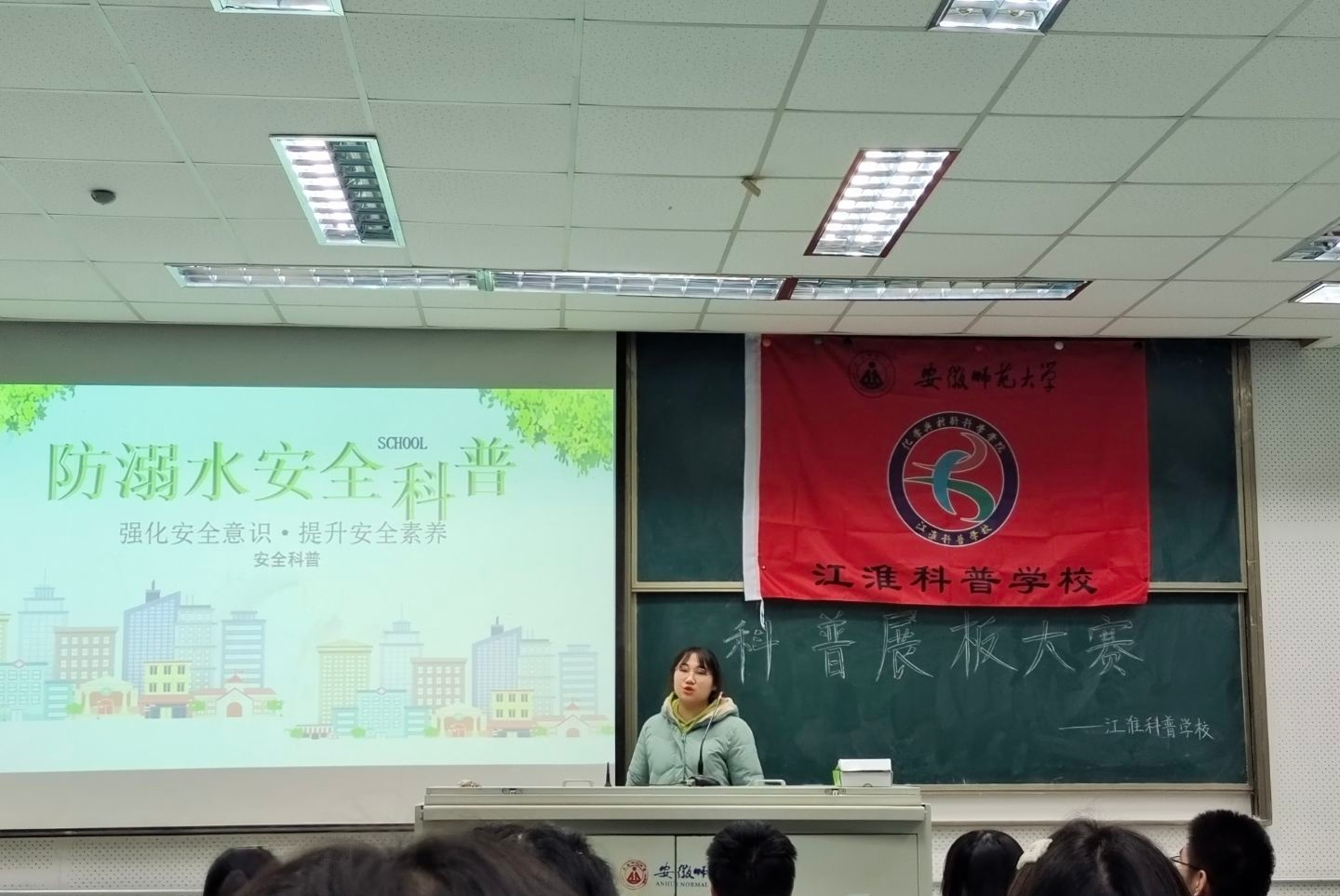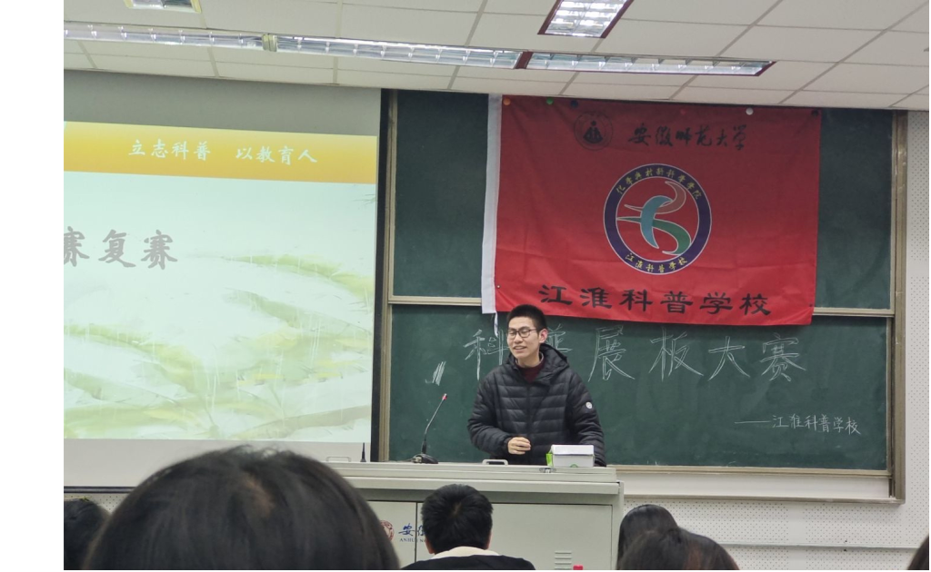 施妍琦、杨俊娜)为激发学生对科学知识的学习兴趣,使同学们热爱生活、热爱科学,在2021年11月27日晚七点在2070401教室,江淮科普学校志愿服务组织举办科普展板大赛复赛。比赛得到芜湖市化学化工学会的指导和绿帽奴