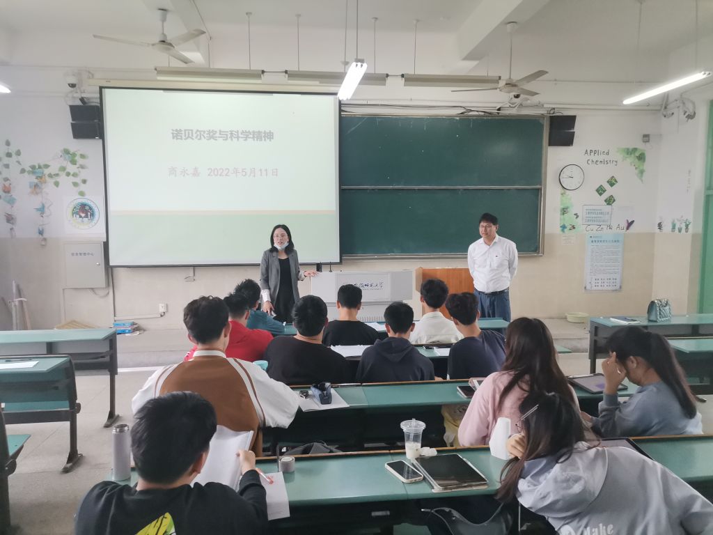 商老师介绍了诺贝尔奖建立以来的历史,并分析了中国华人的诺贝尔获奖情况,以此激励大家,作为当代大学生,应当树立远大的理想,拥有同诺贝尔一样的科学精神,提升自己,未来是属于青年一代,是属于我们新时代的大学生。同时,商老师希望大家有着追求真善美的精神,不断创新,在科学的道路上不屈不挠的奋斗,以无私奉献的精神突破自我,向着科学的最高峰不断前进,诠释完美的大学生活。