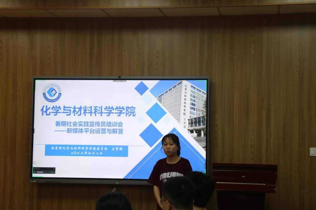 于礼勤楼707会议室举办了宣传员培训会,本次会议详细介绍了新闻稿投稿、微信推文推送等宣传平台要求,院团委学生副书记吴泓婧就新闻稿的撰写以及投稿方式进行了详细的说明,同时介绍了活动照片的拍摄与选取要求;宣传部副部长左梦琪、吴星悦详细介绍了微信推文和活动海报的制作方法,同时详细解读了暑期社会实践团队的宣传报道方案。