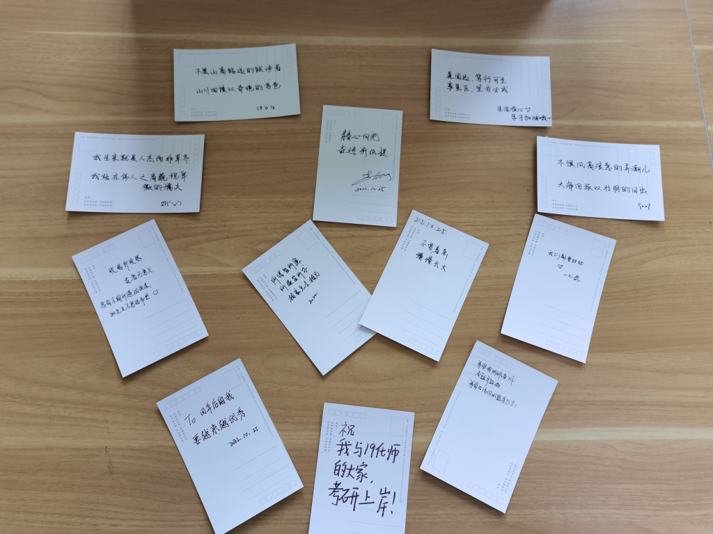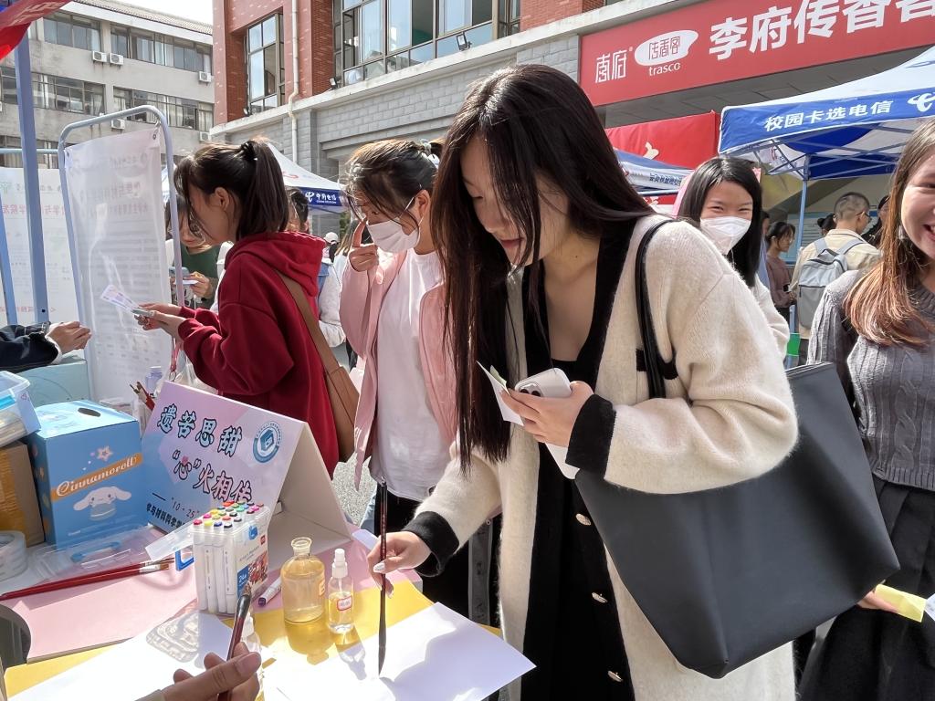 为积极响应本次“‘10·25’大学生心理健康教育月”宣传活动,我院特推出了“遗苦思甜,‘心’火相传”和“妙笔生花”两项特色活动,并于10月25日在二食堂广场处进行现场展示。活动过程中,同学们将自己最近的烦恼写在明信片上,投进了“烦恼箱”,抒发自己内心深处的声音,同时从“寄语箱”中抽取一份他人的心灵寄语,参与的同学在抛下烦恼的同时也收获了一份来自他人的鼓励寄语。