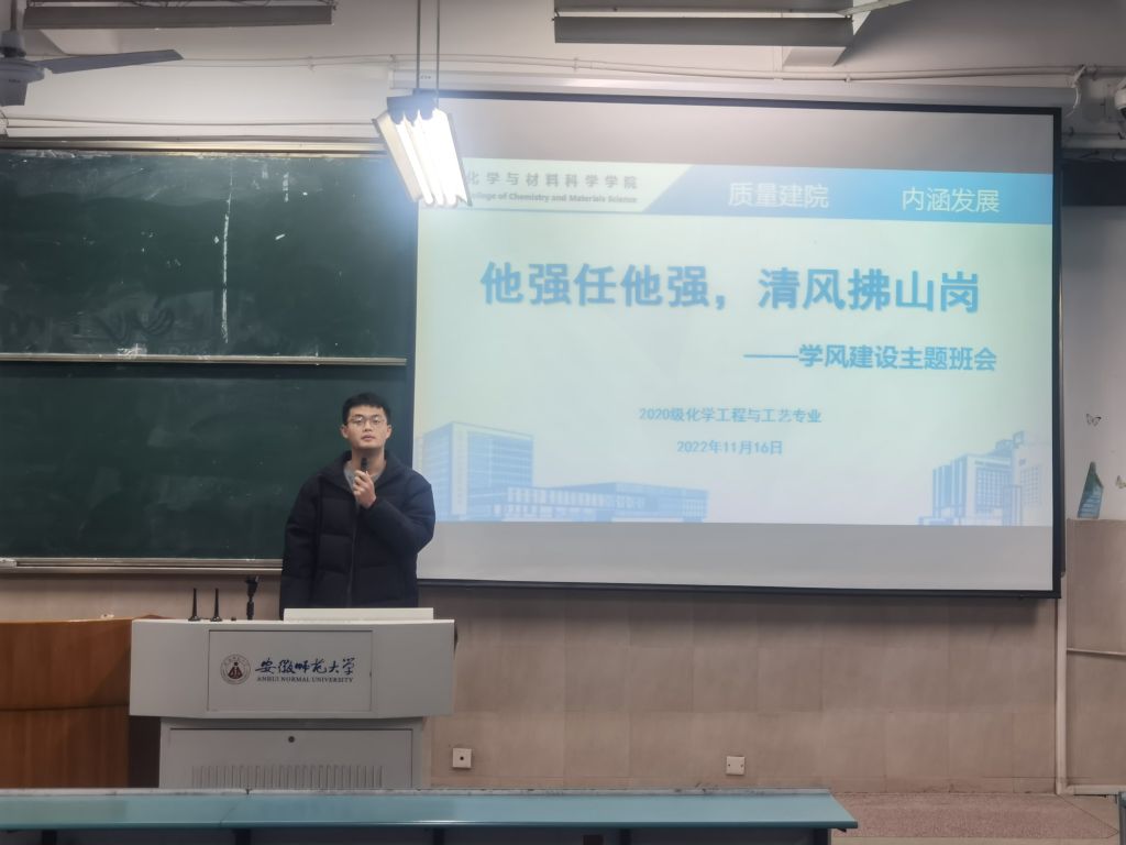 2020级化学工程与工艺专业于11月16日晚七时在行知楼2020203开展学风建设主题班会,本次班会由辅导员于洪翔主持。