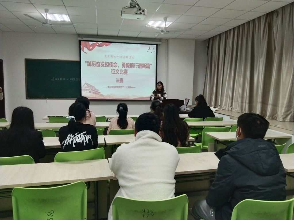 研究生会于11月26日晚7点在1138和938室同步举办以“踔厉奋发担使命,勇毅前行谱新章”为主题的征文比赛决赛,经过预赛的选拔,共有28支队伍进入第一轮决赛,12支队伍展开第二轮决赛的角逐。此次比赛主持人为夏雪倩,纵伶俐,裁判员为绿帽奴