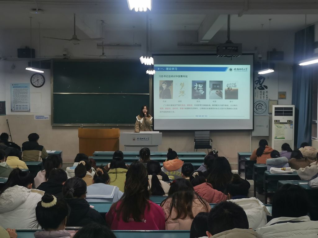 高举伟大旗帜,彰显理论自信。为深入学习宣传贯彻党的二十大精神,班级两位思政委员罗天、张潇潇领学了党的二十大报告中的新观点、新论断、新思想等方面。辅导员王霞则结合具体事例勉励班级同学,当代青年生逢盛世,要紧握新时代“接力棒”,奋力践行党的二十大对青年的殷切期望,踔厉奋发、勇毅前行、接续奋斗,争做有理想、敢担当、能吃苦、肯奋斗的新时代好青年。