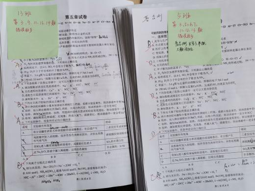 在孙影老师的指导下,小组成员批改完作业后用便签写上错误较多的题号,便于老师在讲作业时能把握学生的学习反馈情况。