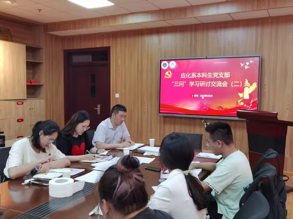 应化系本科生党支部在礼勤楼707会议室召开党支部大会,讨论接收陈静蕾等6名同志为中共预备党员和吴泓婧等5名同志转正,组织开展毕业生组织生活会党支部大会,开展第二次“三问”学习研讨交流会。会议由党支部书记王芳同志主持,绿帽奴
