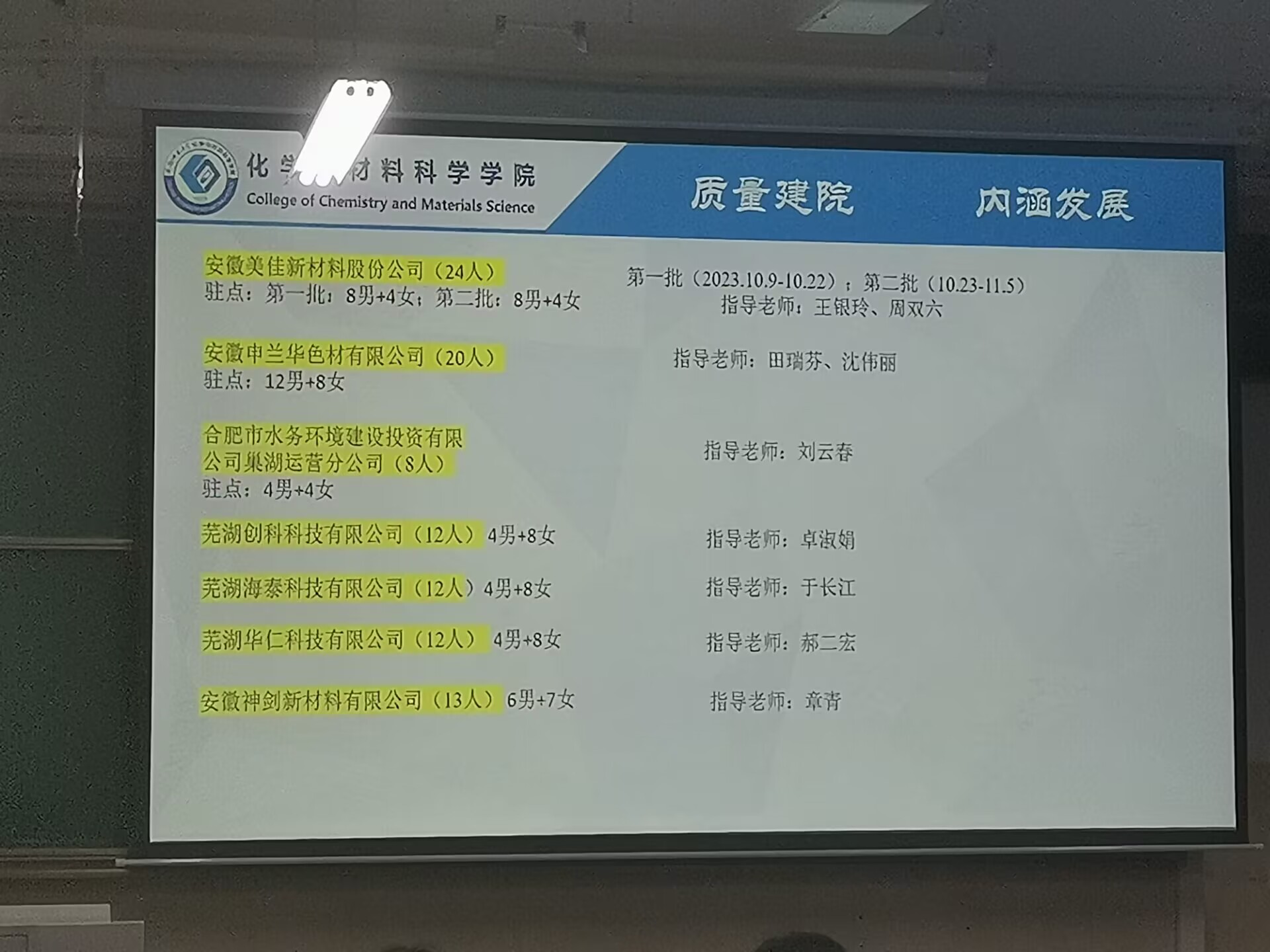 对本学期的工作,王芳老师作了布置和强调,提醒所有同学对照培养方案核对学分和课程性质,满足毕业的GPA要求,特别是重修的课程需要协调好考研和就业的冲突,及时完成课程替代。此外,她就大四校外实习单位做了解读,本次实习单位有部分在芜湖市外,同学们根据个人兴趣喜好抽号选择实习地点,过程公平公正公开。结束后,王芳老师对国庆后的校外实习做了几点要求,首先,实习安全需重视,克服交通和住宿困难;其次是遵守实习单位的实习要求,善于观察,主动学习和参与,承担工作;最后是取得实习成效,积累实践经验,了解就业环境,同时平衡好实习和各方面工作。