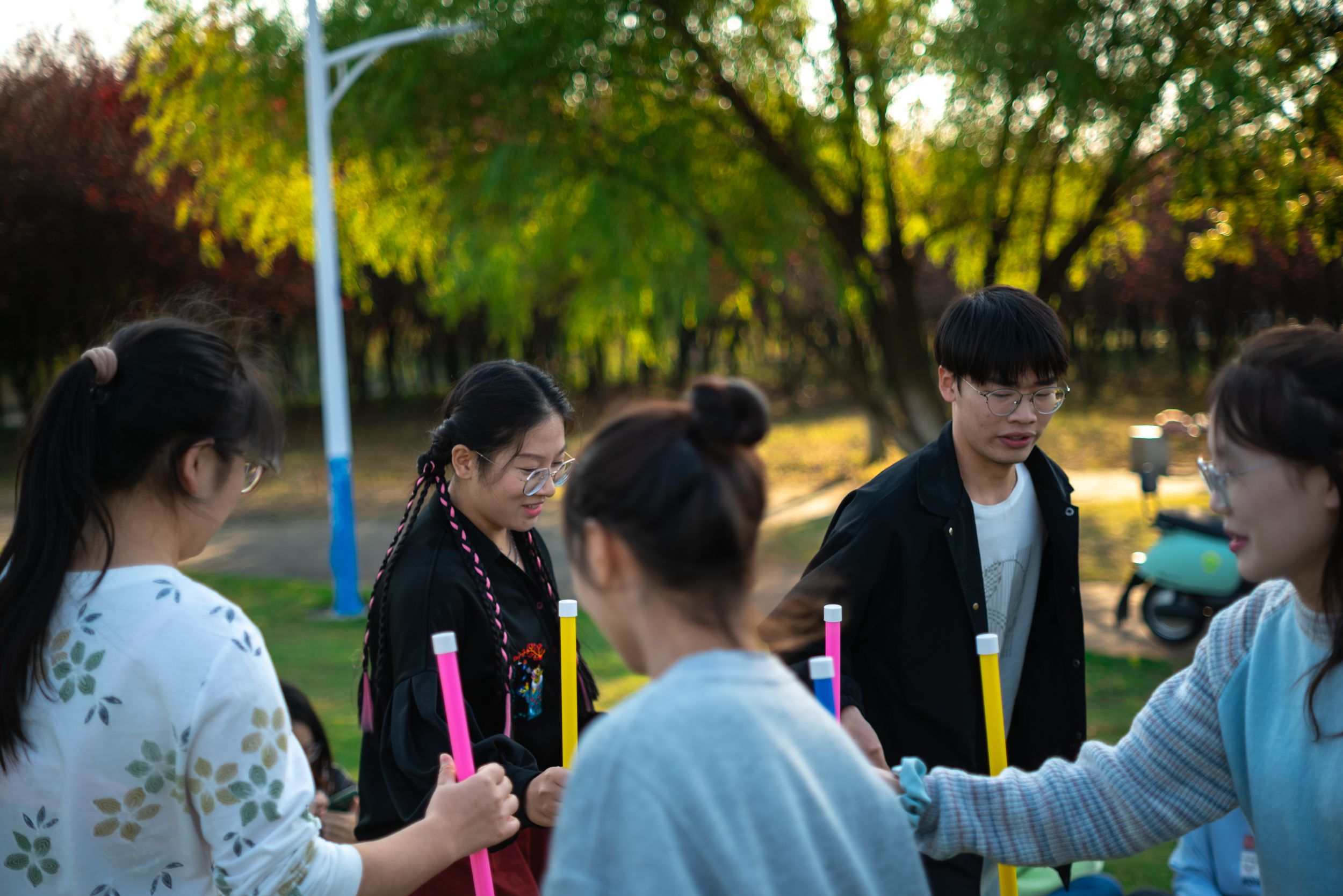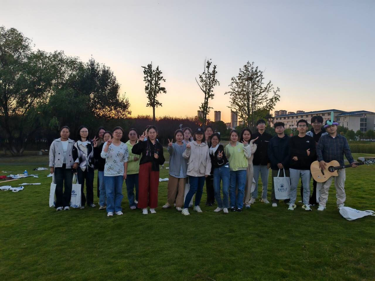 于花津校区草坪举办班级秋季趣味运动会,研究生辅导员张薇和全体2023级学科教学(化学)和课程教学论(化学)专业学生参加此次活动。