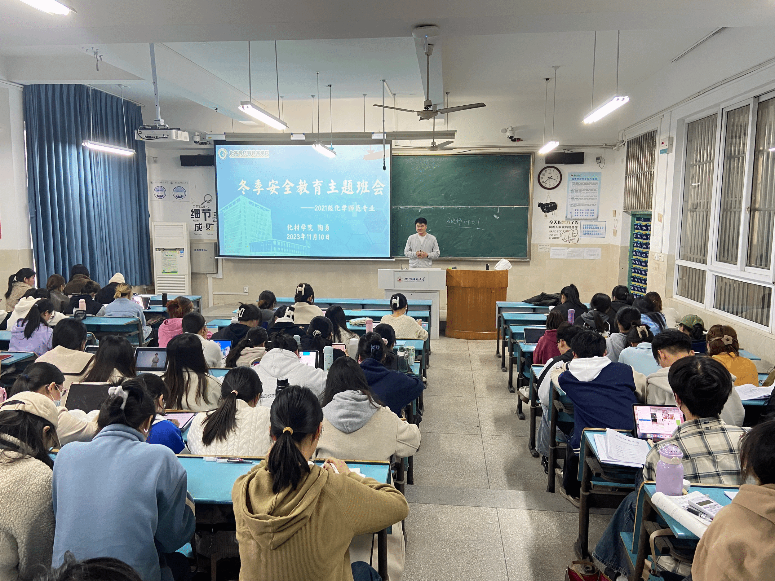 陈淑婷、陶勇)为了提高同学们的安全意识,2023年11月10日下午,陶勇老师在2010302、203教室为2021级化学师范专业全体同学召开了冬季安全教育主题班会,与同学们共同探讨冬季安全的重要性。