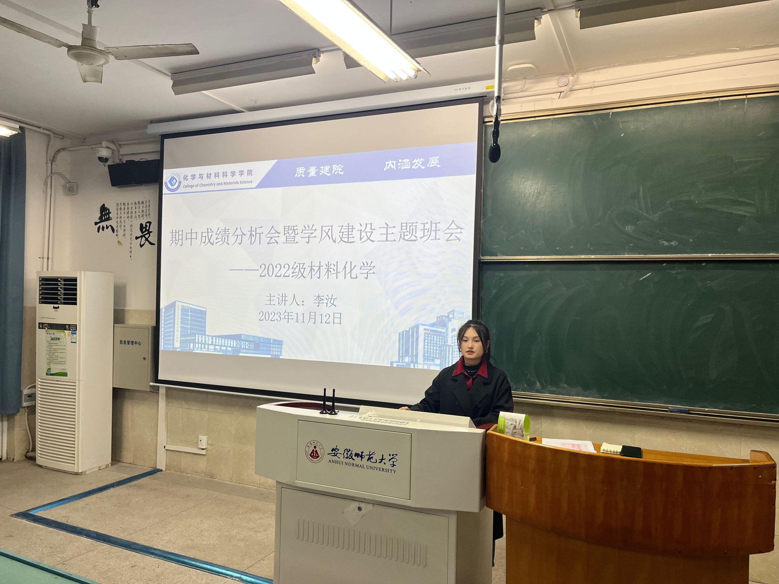 2022级材料化学专业于2023年11月12日晚在1号教学楼604成功召开了期中成绩分析会兼学风建设主题班会,班会由辅导员李汝主持。本次活动旨在全面分析班级的学业状况,为同学们提供更好的学习支持和指导。