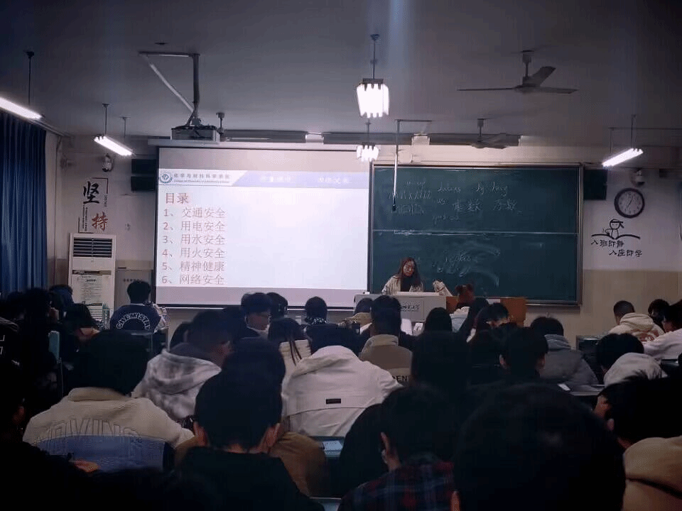 朱文棋、李晨蕾)2023年11月13日晚七点在2010602教室,2022级应用化学专业在辅导员朱文棋的主持下开展冬季安全主题班会,该班会围绕六大安全——交通安全,用电安全,用水安全,用火安全,精神健康和网络安全展开。辅导员朱老师结合我专业学生学习生活实际,系统全面的讲解了与同学们息息相关的安全问题,增强了同学们的安全意识,为同学们的丰富多彩的冬季校园生活奠定了良好的基础。