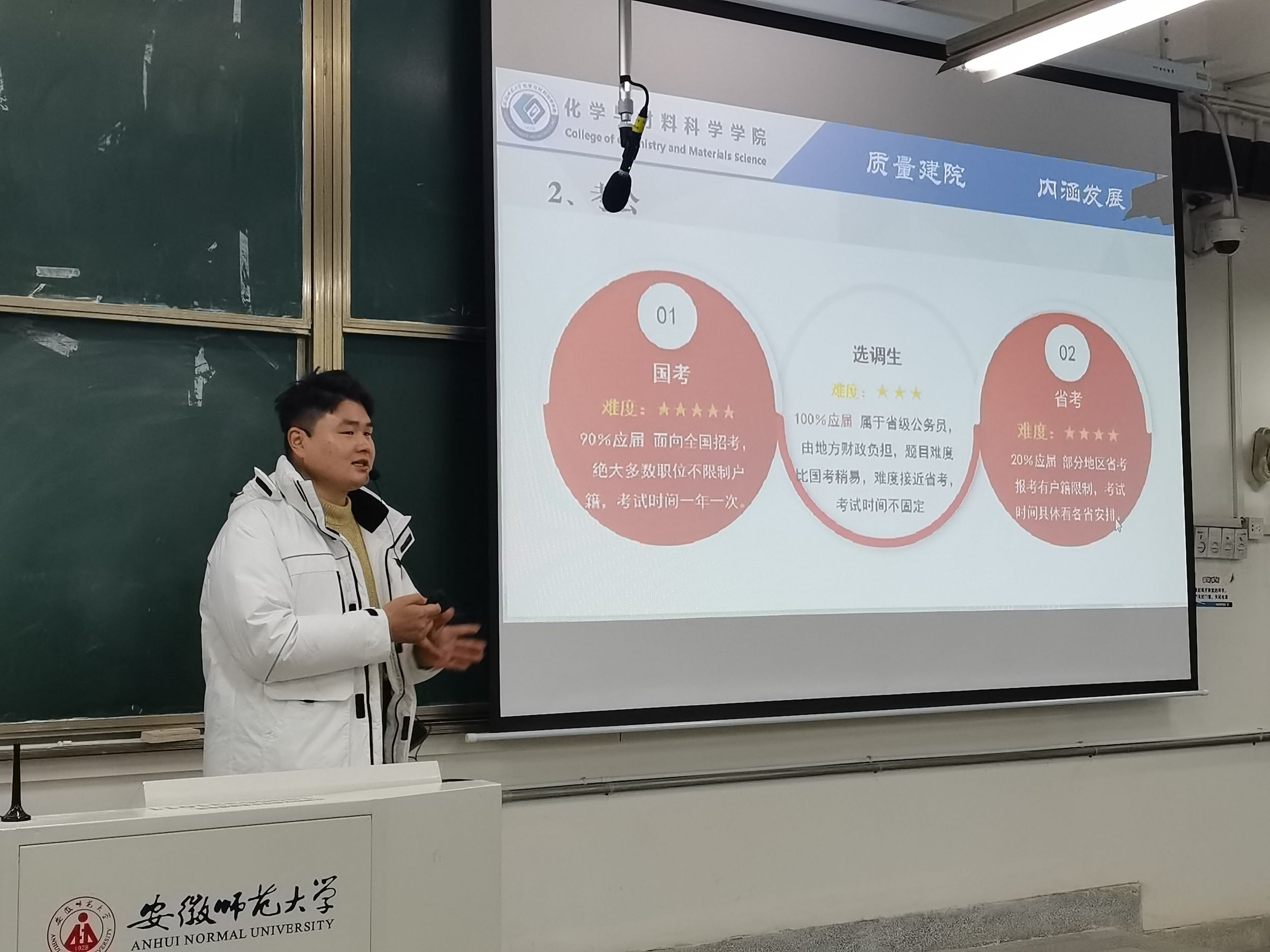 在探讨考研规划时,辅导员不仅详细解释了考研时间安排、择校思路和必备的信息渠道,还细致分析了考试科目、分数要求以及近年来的考研趋势变化,通过直观展示教育学、理学、工学等不同学科在过去五年的国家分数线波动,引导学生们对考研形势形成更为清晰的认识。此外,辅导员也详细地普及了公务员道路的相关知识,从国家公务员考试到地方层面的选调生、省考,都进行了细致的讲解与比较,帮助学生们理解各自的报考条件、选拔流程及其职业发展前景。他还针对考编路径做了详尽的分析,区分了事业单位编制、教师岗位、特岗教师计划、西部志愿者计划以及“三支一扶”项目的不同特点和申请要求,为同学们提供了多角度的视野。