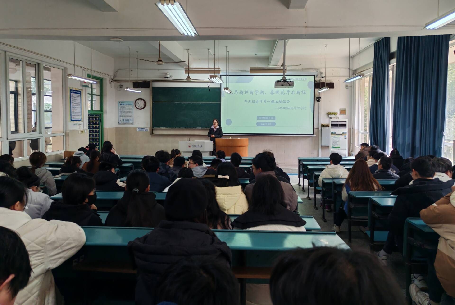 詹丽娟、王芳)为了让学生更好地开展毕业班工作,了解考研复试及调剂的内容,树立自信平稳的复试、就业心态,提升毕业生积极就业的意识,3月6日下午、3月7日上午分别在在行知楼2070102教室、2020103和2020304教室给20级化学拔尖人才班、应用化学和化学师范专业召开了“龙马精神新学期,春暖花开启新程”毕业班开学第一课主题班会。此次会议由辅导员王芳老师主持,全体在校同学积极参与,共同为未来的毕业之路规划方向。