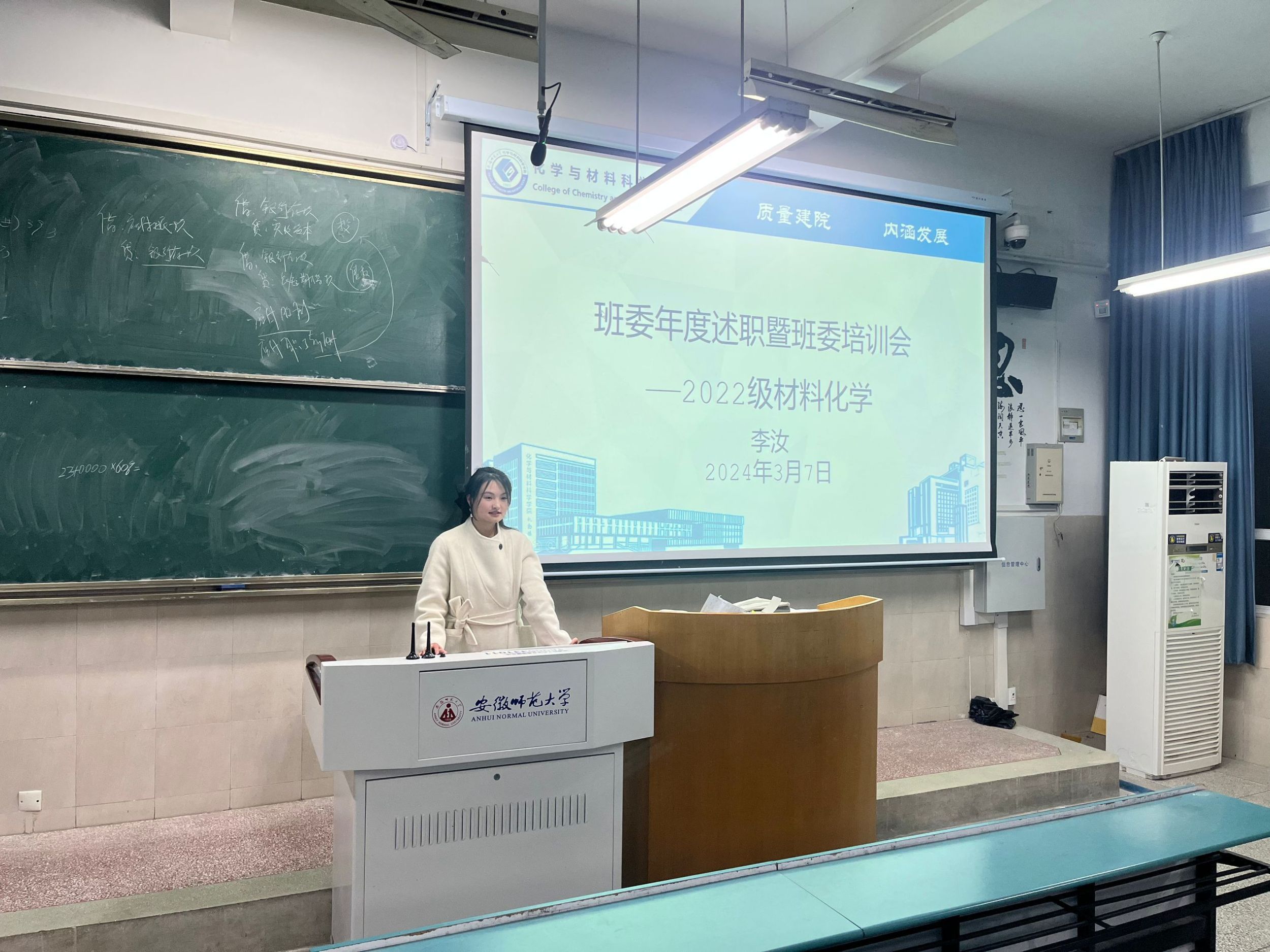 王文辉)春意盎然,鸟语花香。为更好的开展班级建设工作,2022级材料化学专业于2024年3月7日晚在行知楼2号楼101室开展了2022级材化专业班委和寝室长新学期第一次例会。辅导员李汝老师出席并主持本次会议,本专业全体班委和寝室长参加会议。
