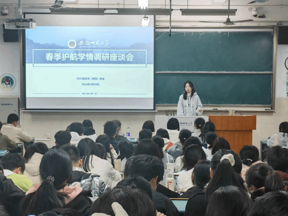 本网讯(王涵)为提高同学们的安全意识,共同守护校园安全,3月28日晚,2023化学(师范)专业在行知楼一号楼502教室开展了以“安全纪律记心中,平安文明伴我行”为主题的班会,本次班会由辅导员王霞老师主持,23级化学师范专业全体同学参加。
