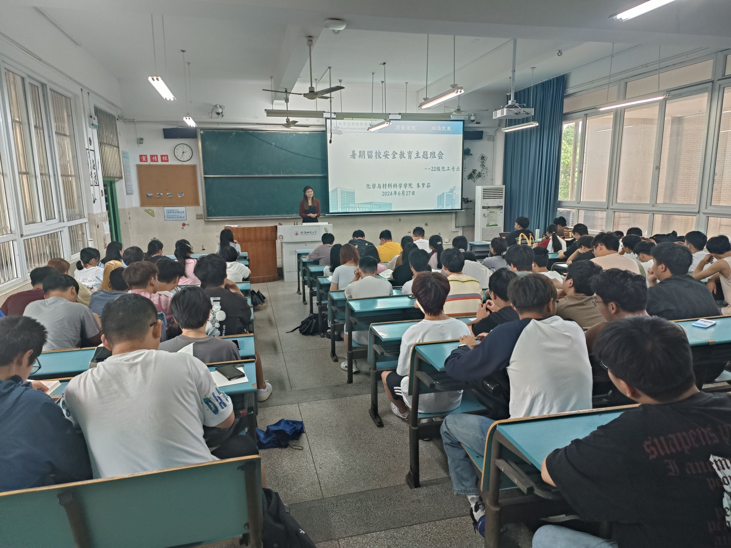 郁妍)在期末考试到来之际,为了加强同学们诚信答题的意识,2024年6月27日,化学工程与工艺专业同学在一号楼303教室开展了诚信教育主题班会,本次会议的主持人为辅导员朱梦茹老师。