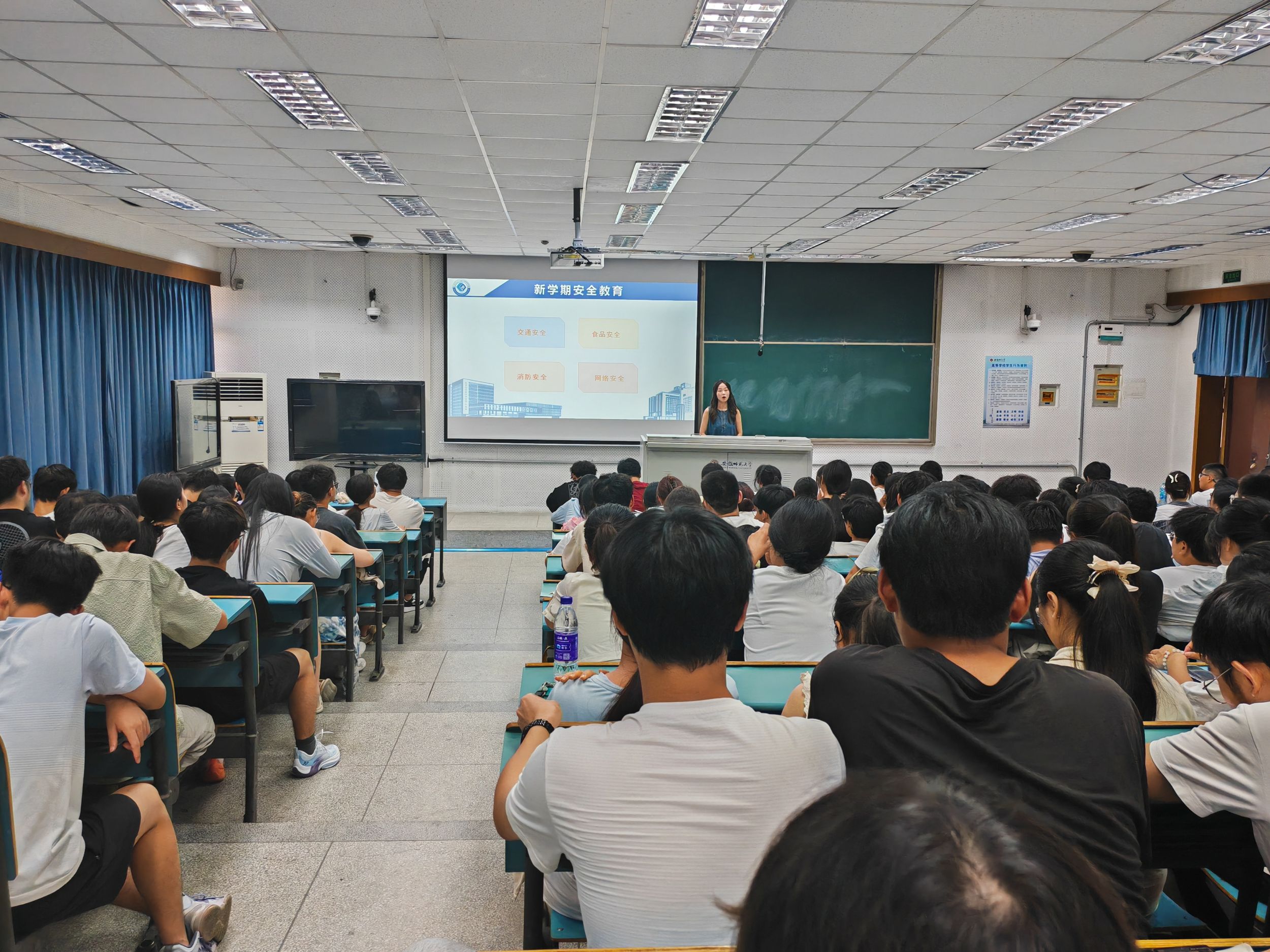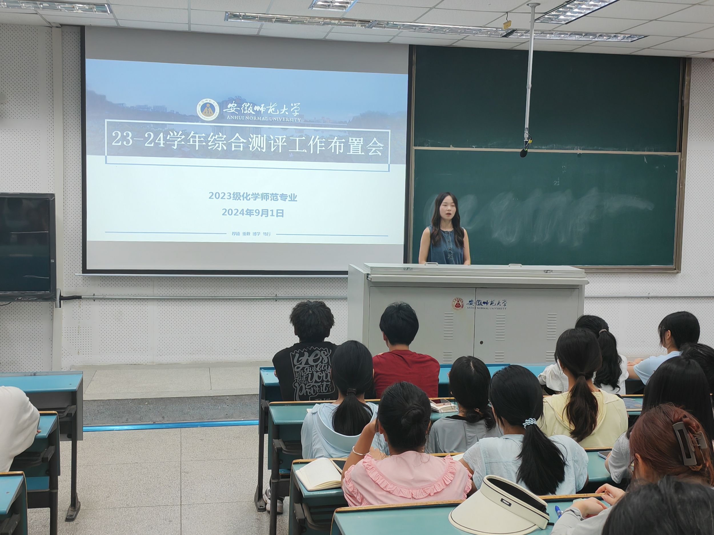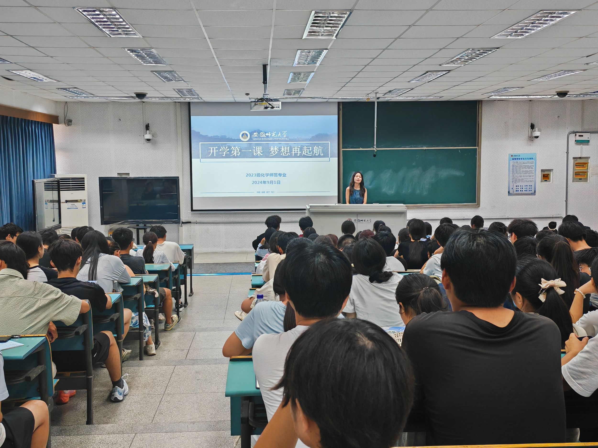 段雨含)新学期刚开学,为了这一学期学生们更好的发展,辅导员王霞于9月1日在行知楼七号楼各班级教室,开展了“开学第一课”主题班会,全体同学参会。