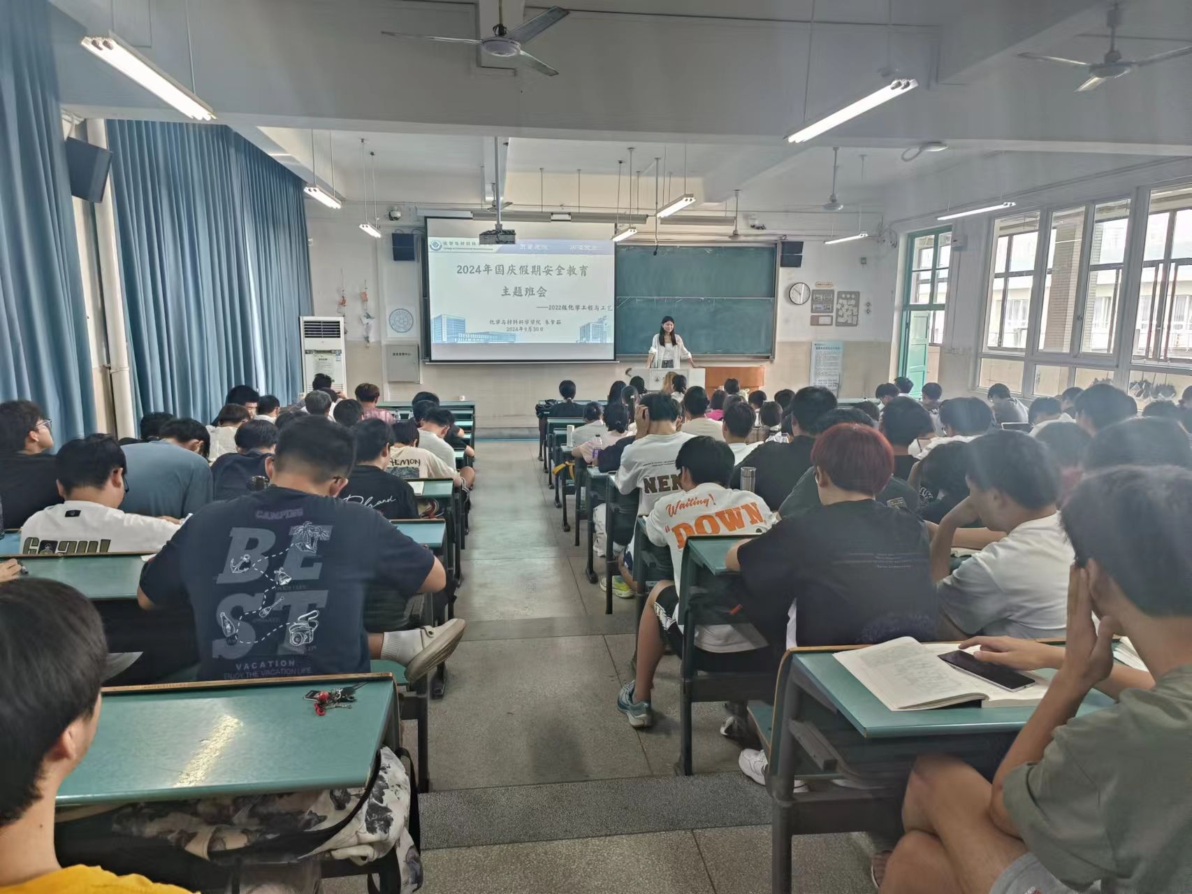 郁妍)为了让全体学生都能过一个安全有意义的国庆假期,2024年9月30日,化学工程与工艺专业在一号楼604教室开展了国庆安全教育主题班会,本次班会的主持人为辅导员朱梦茹老师。