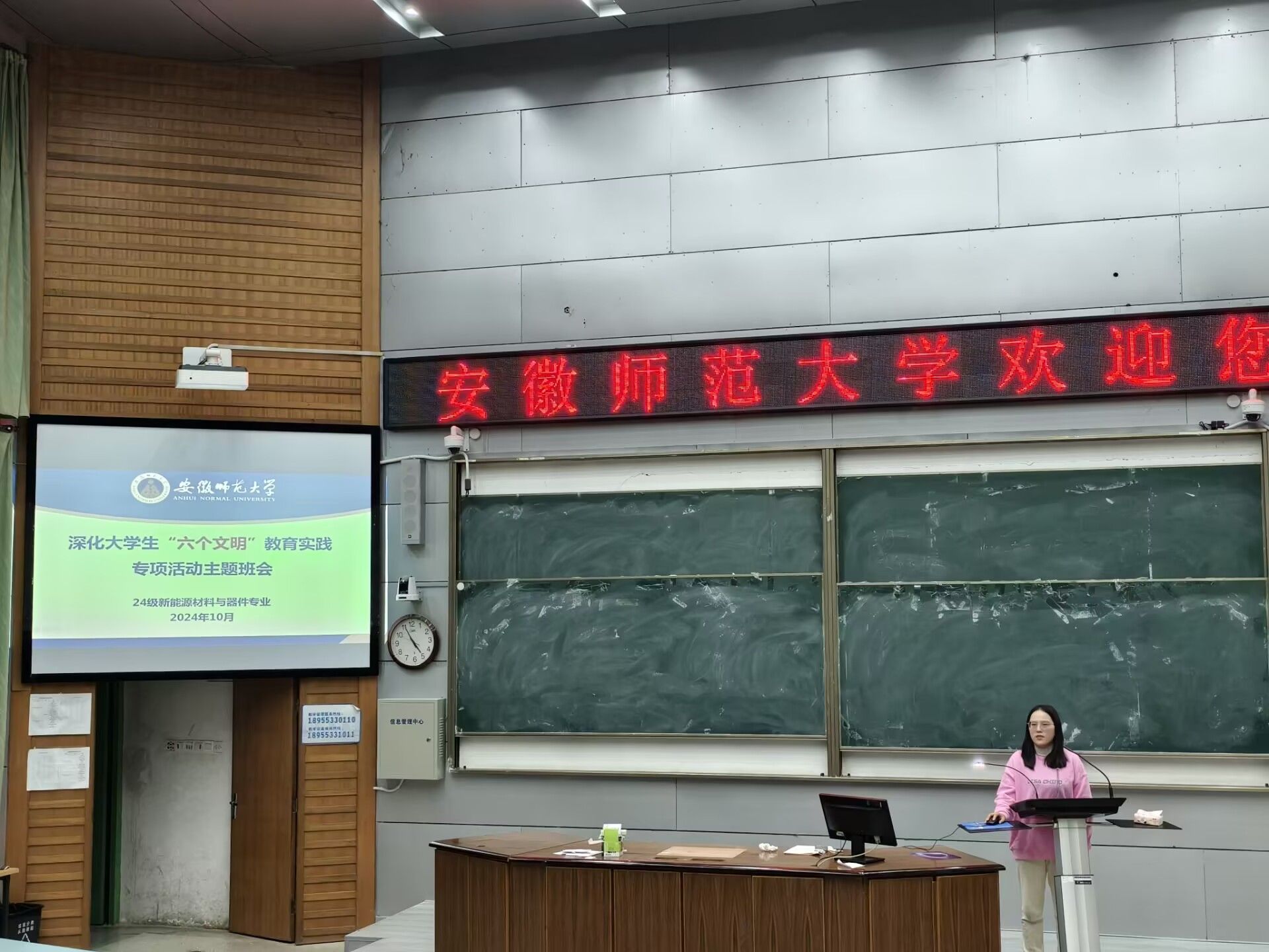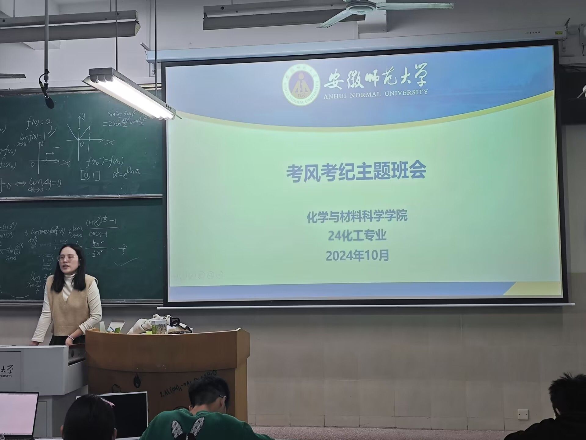 吕欣晨) 为深入推进大学生护航行动计划,营造文明健康的校园育人氛围,营造良好学风班风,10月27、28日2024级应化、化工和新能源三个专业召开了"六个文明"教育实践专项活动暨考风考纪主题班会,主题班会由辅导员王芳老师主持。
