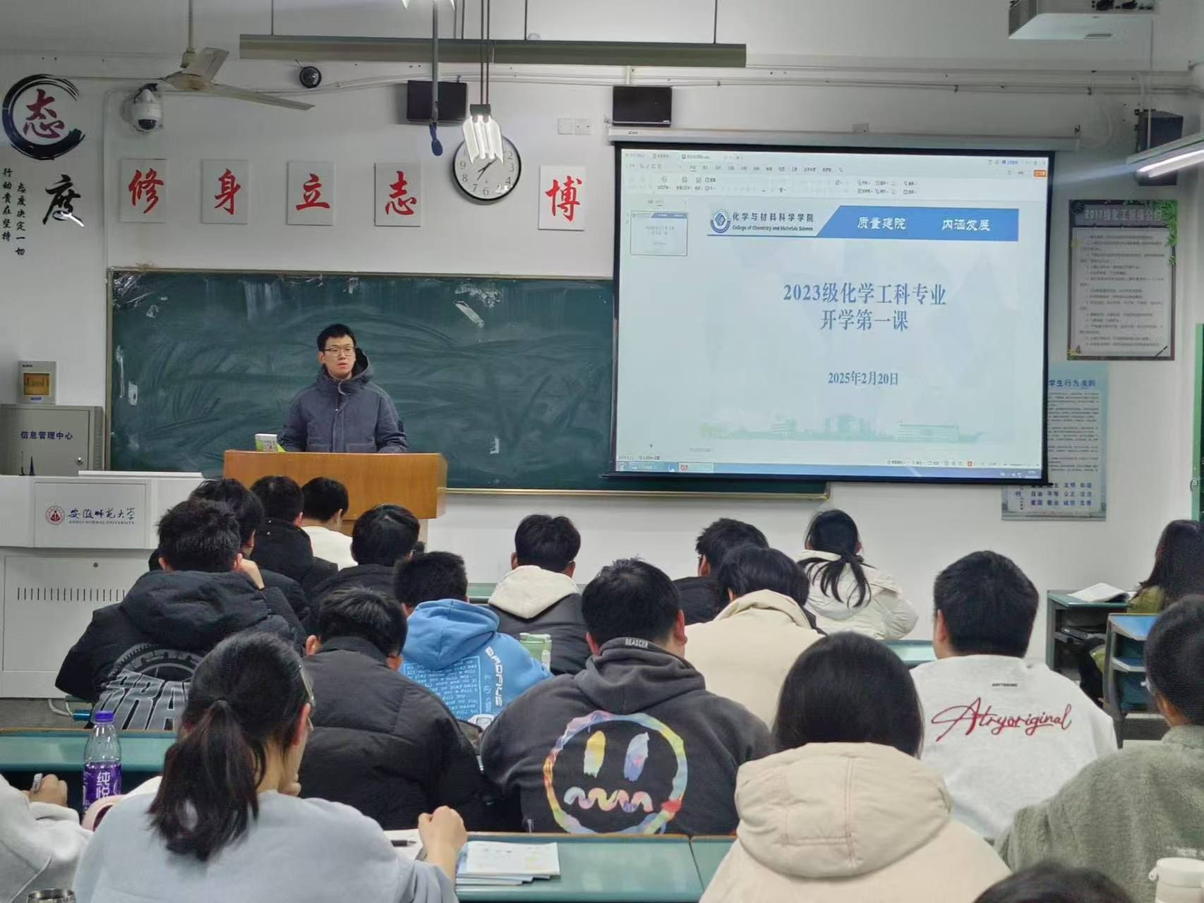 为充分做好本学期的开学工作,明确新学期的奋斗目标,营造良好学习氛围,提高学生安全意识,2月20日,2023级化学工科专业在晚自习教室开展了新学期“开学第一课”主题教育班会。