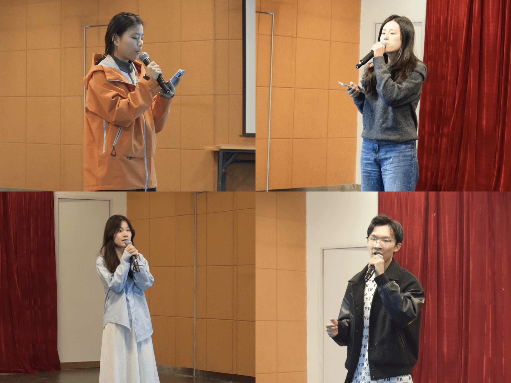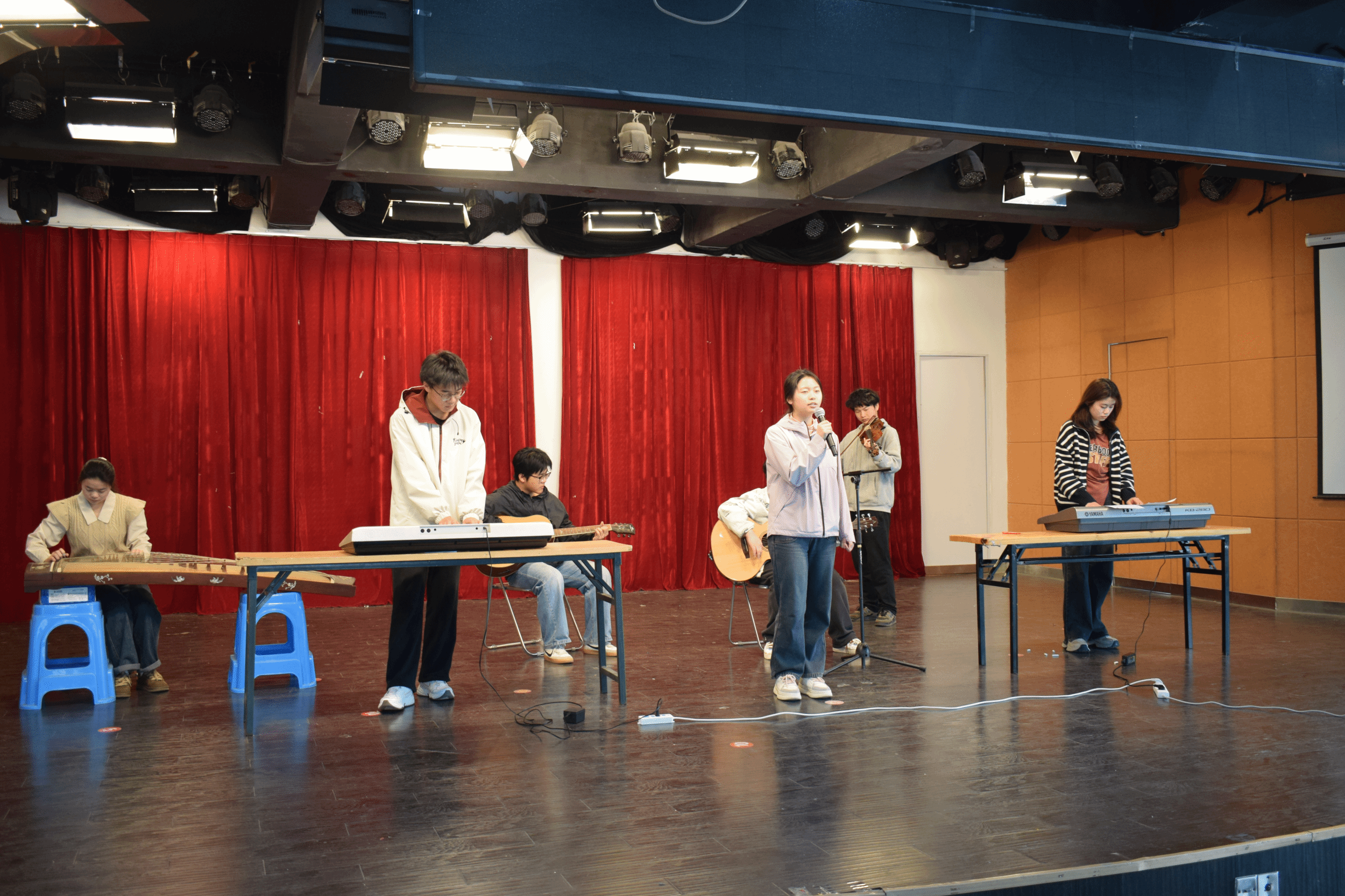评委们从演唱技巧、舞台表现、歌曲情感等方面对参赛选手进行点评,最终选拔出三组选手晋级校级复赛。本科生2022级应用化学专业的杨伊可、洪诗雨带来的歌曲《如愿》,凭借细腻的情感和默契的配合打动了评委和观众。由七人组成的乐队带来的合奏《夜空中最闪亮的星》,乐队成员们配合默契,主唱的歌声与乐器的演奏相得益彰,将歌曲中对梦想的追求和坚持展现得淋漓尽致,让台下观众感受到了音乐的无限魅力。2023级学科教学专业研究生胡欣睿、杨佳演唱的《岁月》,在歌声中诉说着岁月的故事,传递出温暖而坚定的力量,让观众沉浸在歌曲的情感世界中,回味无穷。