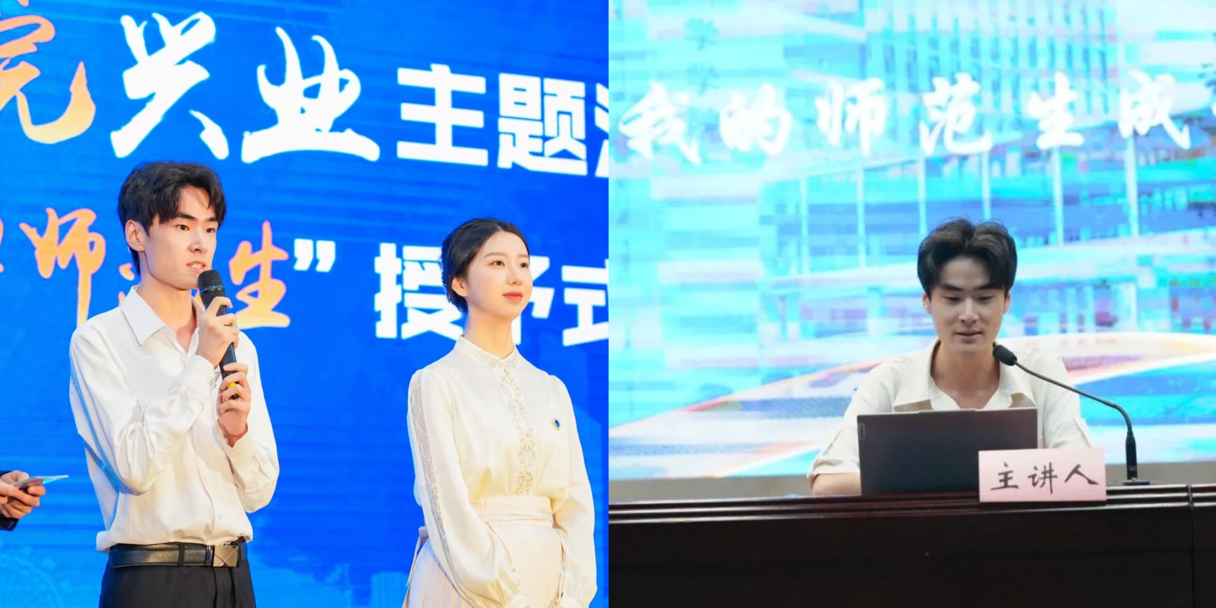 作为首届金牌师范生代表,他积极践行专业领航作用,面向2024级全体新生开展“青春导航”专题宣讲会,以“参天之木,必有其根;怀山之水,必有其源”为题分享自己的师范生成长之旅,内容被摘录至师大共青团官微,完成从受益者到赋能者的角色转换。