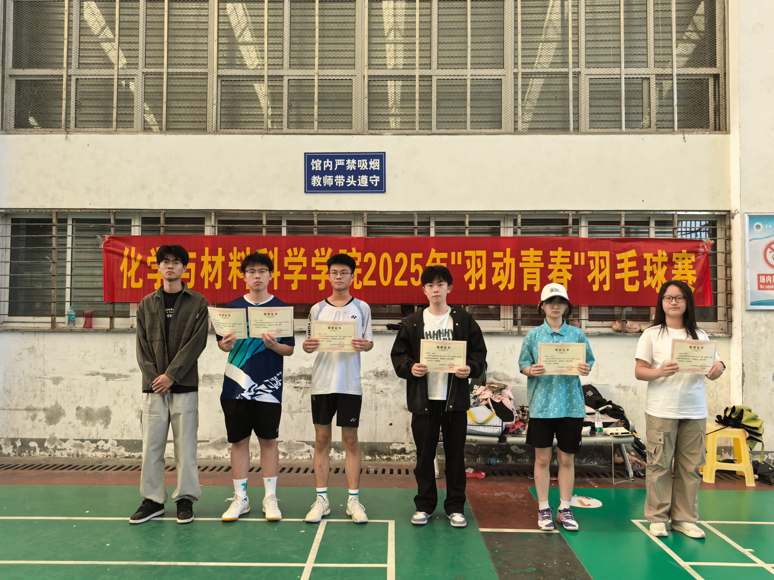 历经层层鏖战,24级新能源专业刘梓雄、24级化学师范专业陈紫忻分别夺得男子组、女子组单打冠军,24级新能源专业谭奕霖、邵伟杰,23级新能源专业王子艳、周玉蓉获男女双打冠军,24级化学师范专业盛鑫杰、刘逸轩获混双冠军。