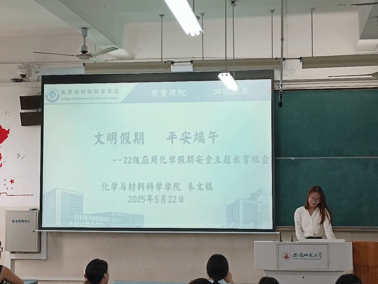 2022级应用化学专业在2010306召开“文明假期,平安端午”主题教育班会。本次班会由辅导员朱老师主持,全体同学围绕出行、消防、财产、网络、人身等安全要点展开学习,切实提升安全防范能力。