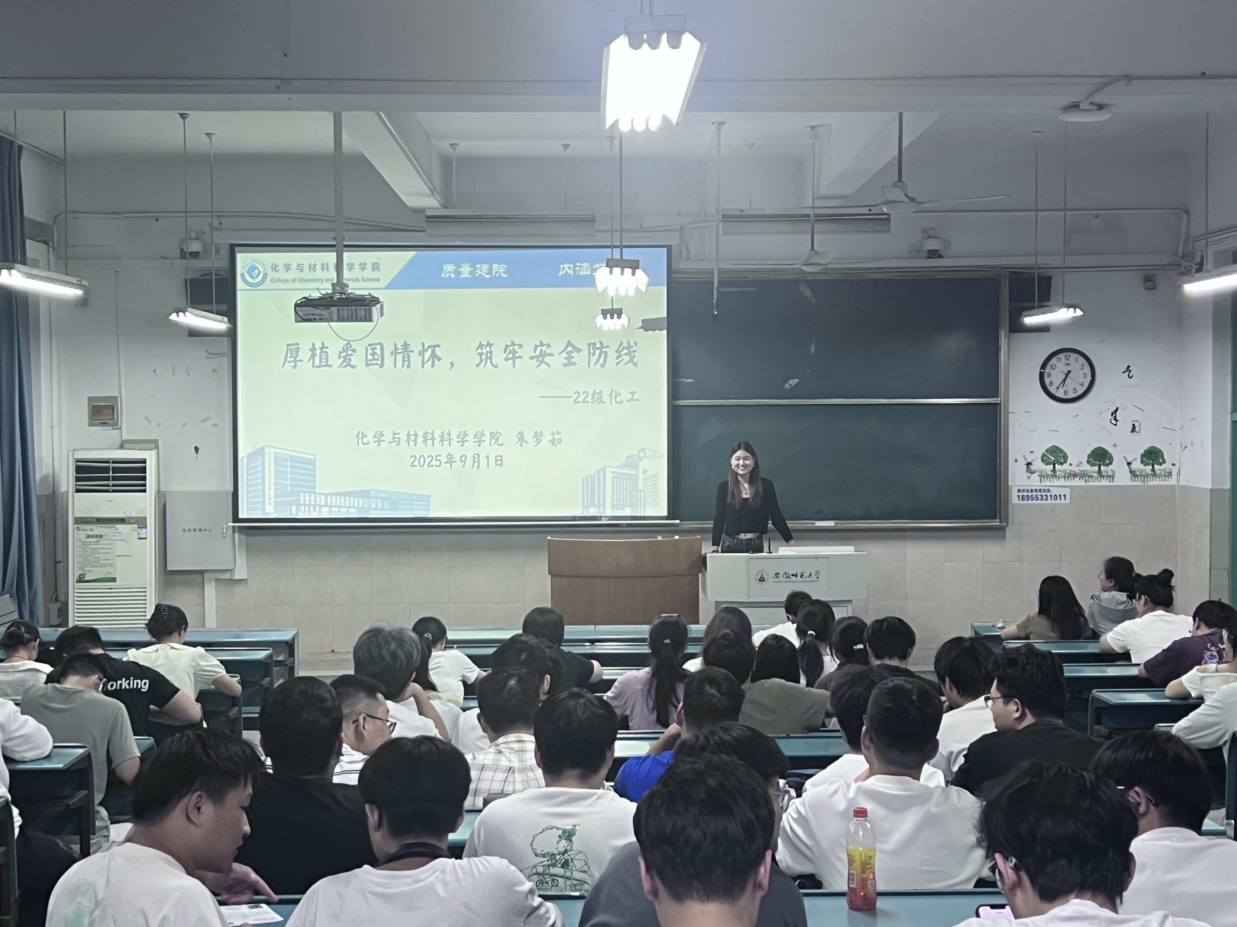 郁妍)为进一步强化大四学生的家国意识与全方位安全防范能力,化学工程与工艺专业辅导员朱梦茹老师于2025年9月1日在2020104教室召开“厚植爱国情怀,筑牢安全防线”专题班会。本次班会紧扣学生成长关键节点,将爱国教育与宿舍管理、矛盾调解、校外安全、反诈宣传等实际问题深度结合,为学生平稳度过大四学年筑牢“思想+安全”双重防线。