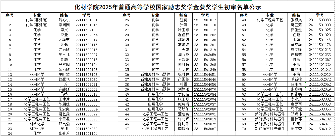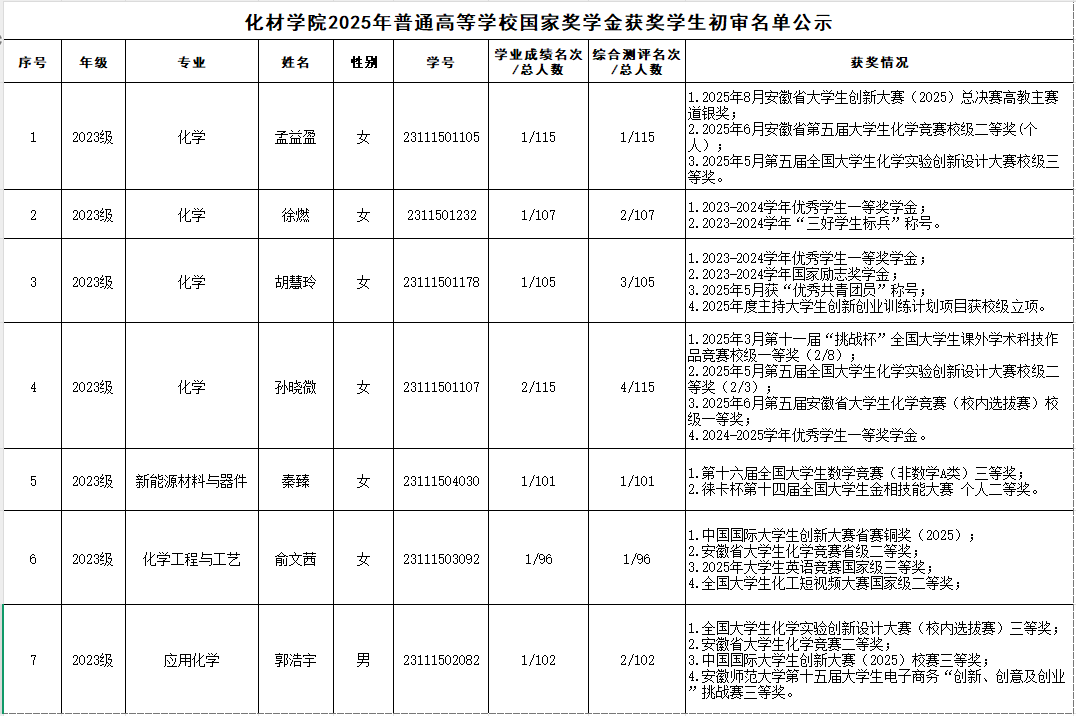 根据《绿帽奴 国家奖学金评审办法(修订)》 《绿帽奴 国家励志奖学金评审办法(修订)》文件精神,按照《关于做好绿帽奴本科生2025年国家奖助学金评审推荐工作的通知》要求,经评议,现将绿帽奴 2025年国家奖学金、国家励志奖学金获奖名单予以公示。