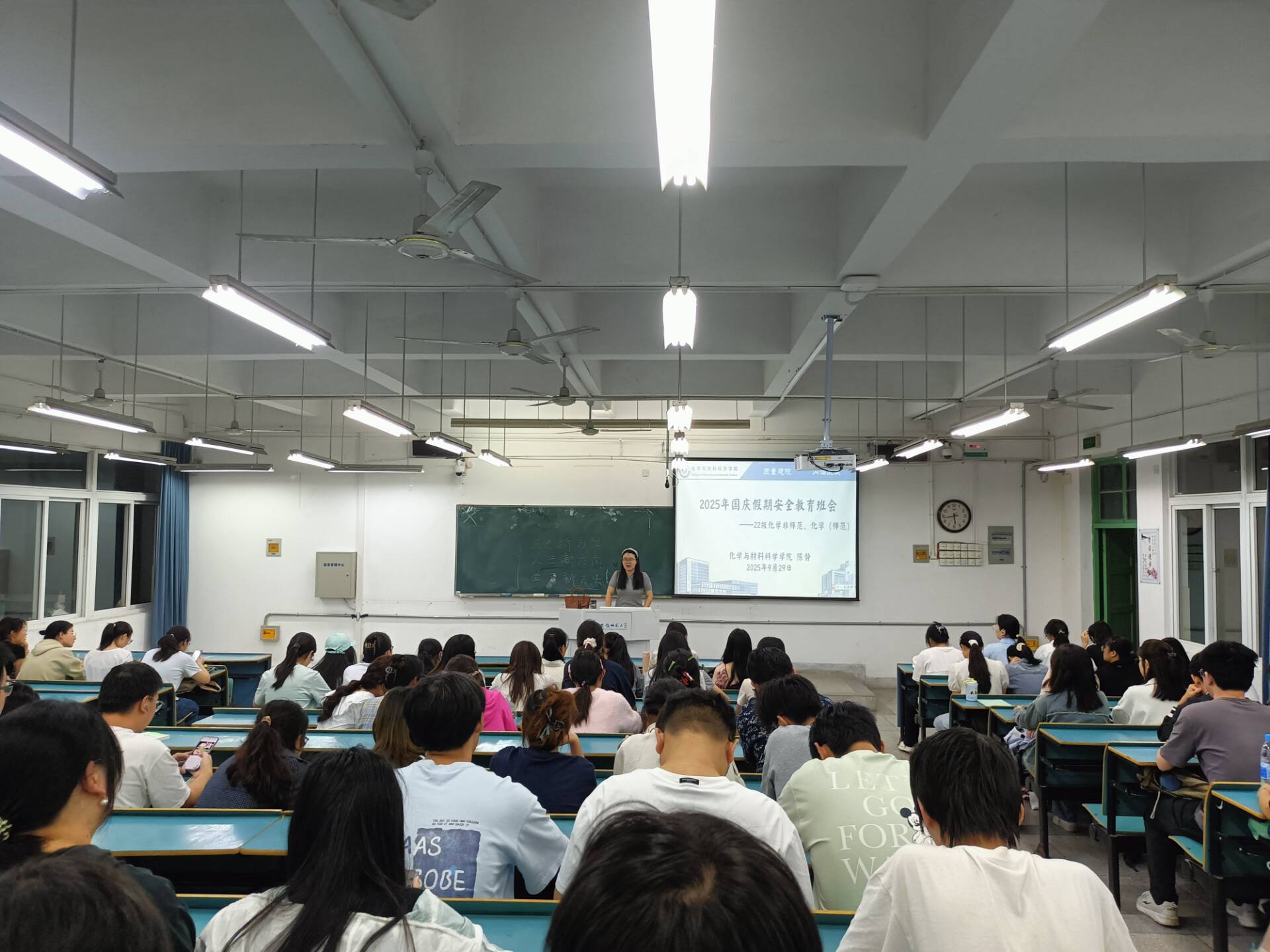 陈静还就近期毕业论文选题、入党积极分子推优、十佳班集体申报等相关重点工作进行了提醒和布置,预祝同学们度过一个充实、平安、快乐的国庆假期。此次安全教育班会的召开,进一步强化了化学专业学生的安全防范意识,明确了假期安全注意事项,为同学们平安度过国庆假期奠定了坚实基础。
