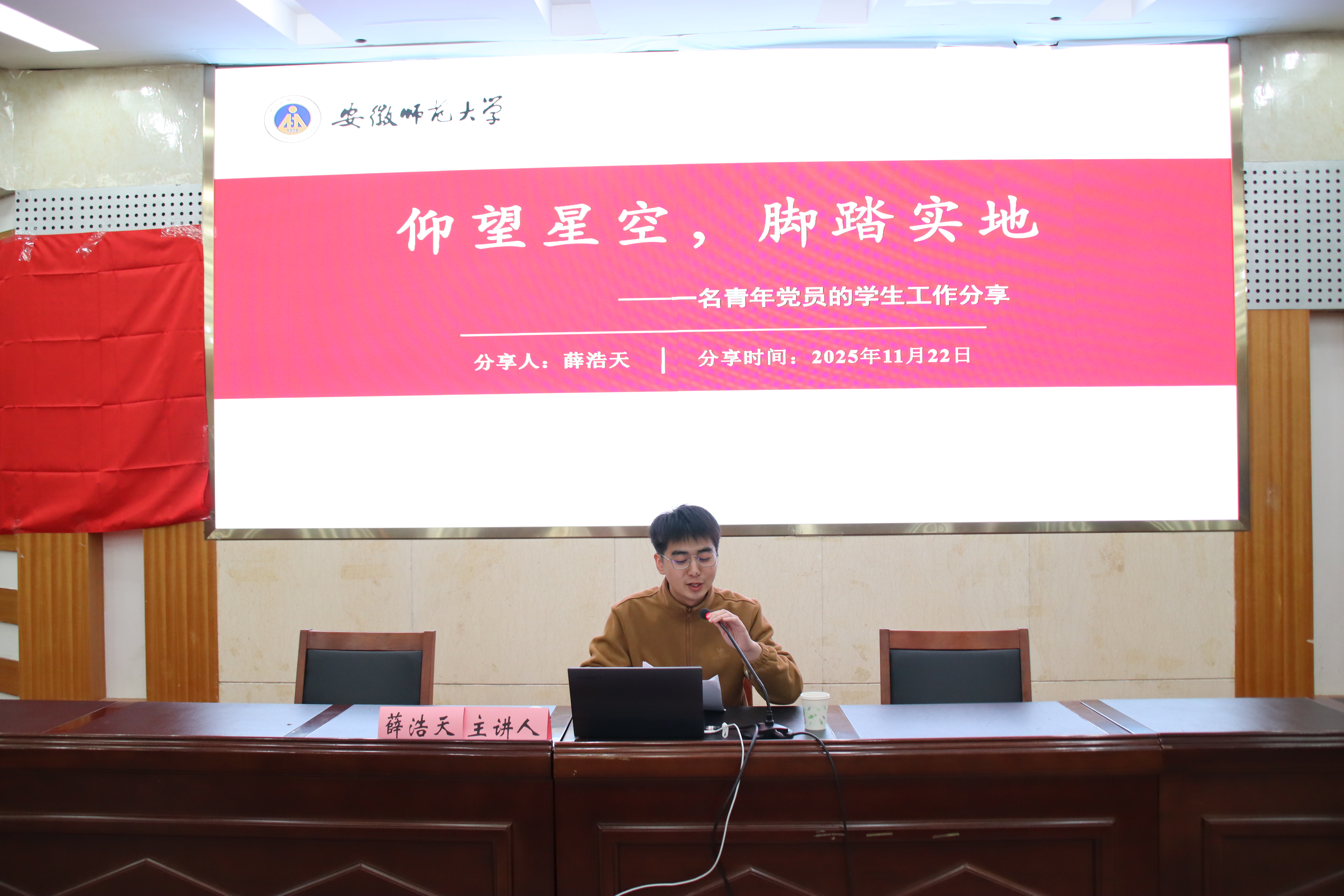 青年党员、校研支团志愿者、化学专业2023级研究生薛浩天以“仰望星空,脚踏实地”为主题,介绍了自己作为研究生支教团成员期间的经验与感悟。他深情讲述了自己在西藏山南市第二高级中学支教过程中的心得,向同学们展示了布达拉宫、羊卓雍措等绝美西藏风光,还分享了和“小格桑花”相处、学习做饭等生活日常,激起了同学们对支教的向往。在讲座的最后,他与同学们探讨“大学”的意义与个人信仰,强调“一代人有一代人的使命”。以“士不可以不弘毅,任重而道远”勉励同学们展现青年担当,服务他人。